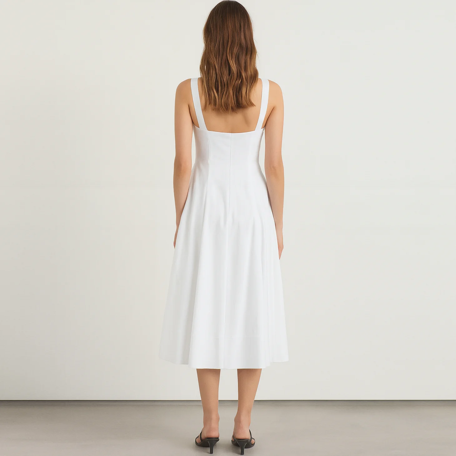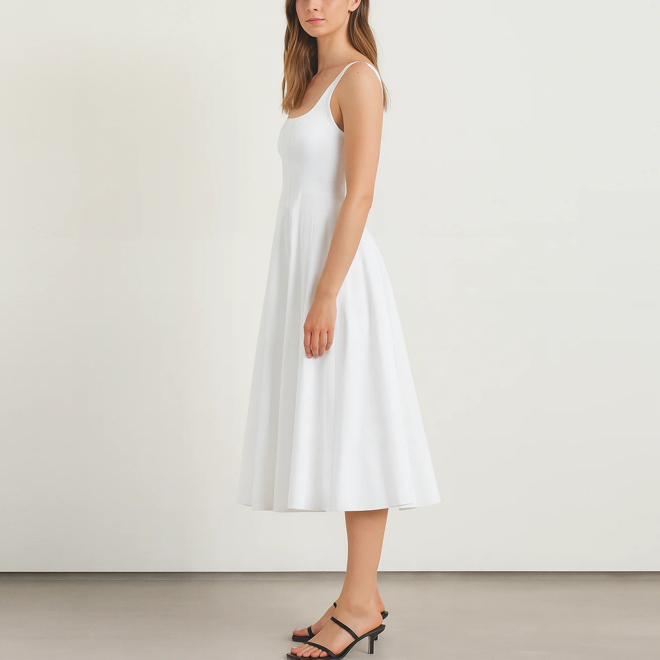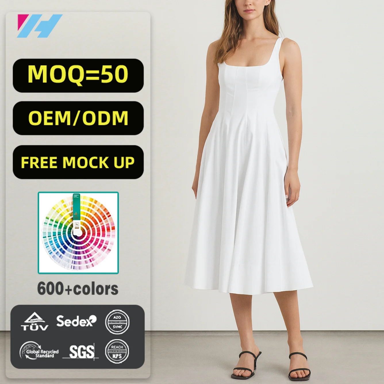 Custom Manufacturer Oem Sleeveless square Neck Ruffle Hem Ladies Women Midi White Long Dress