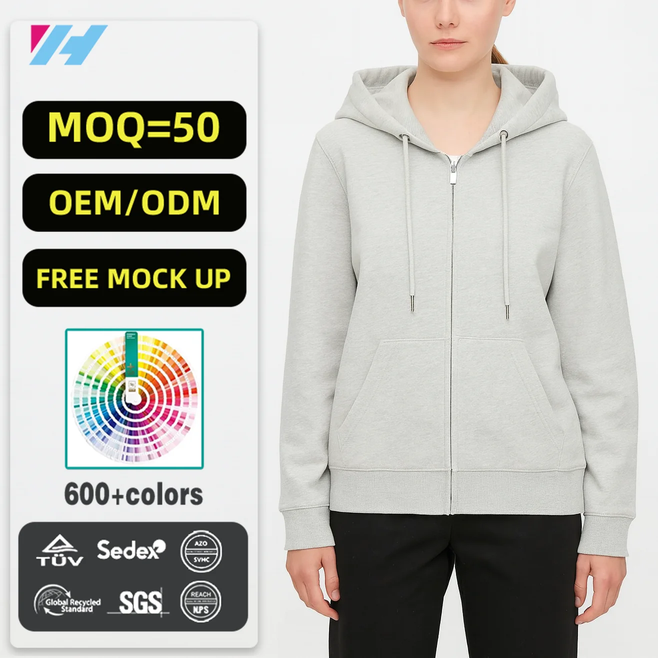 Custom Wholesale High Quality Manufacturer Streetwear Women Ladies Cotton Spandex Blank Zip up Hoodie