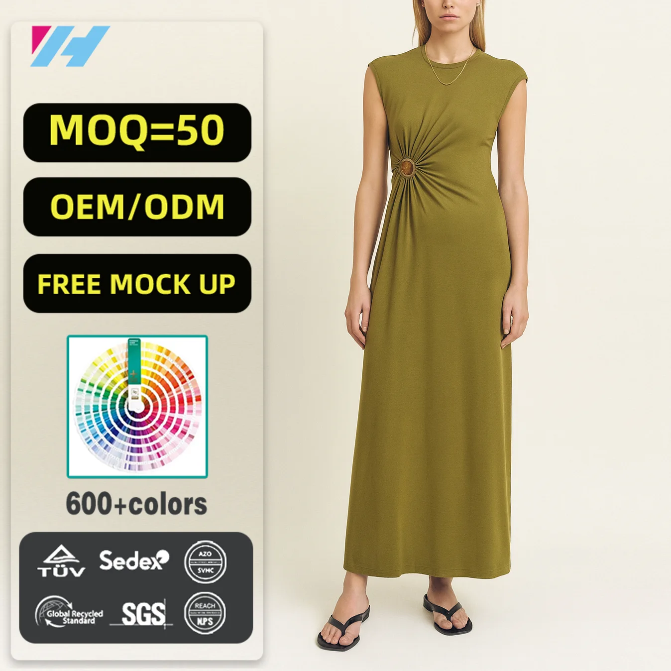 Custom Wholesale High Quality Summer Casual Ladies Women Waist Ruched Midi Dress