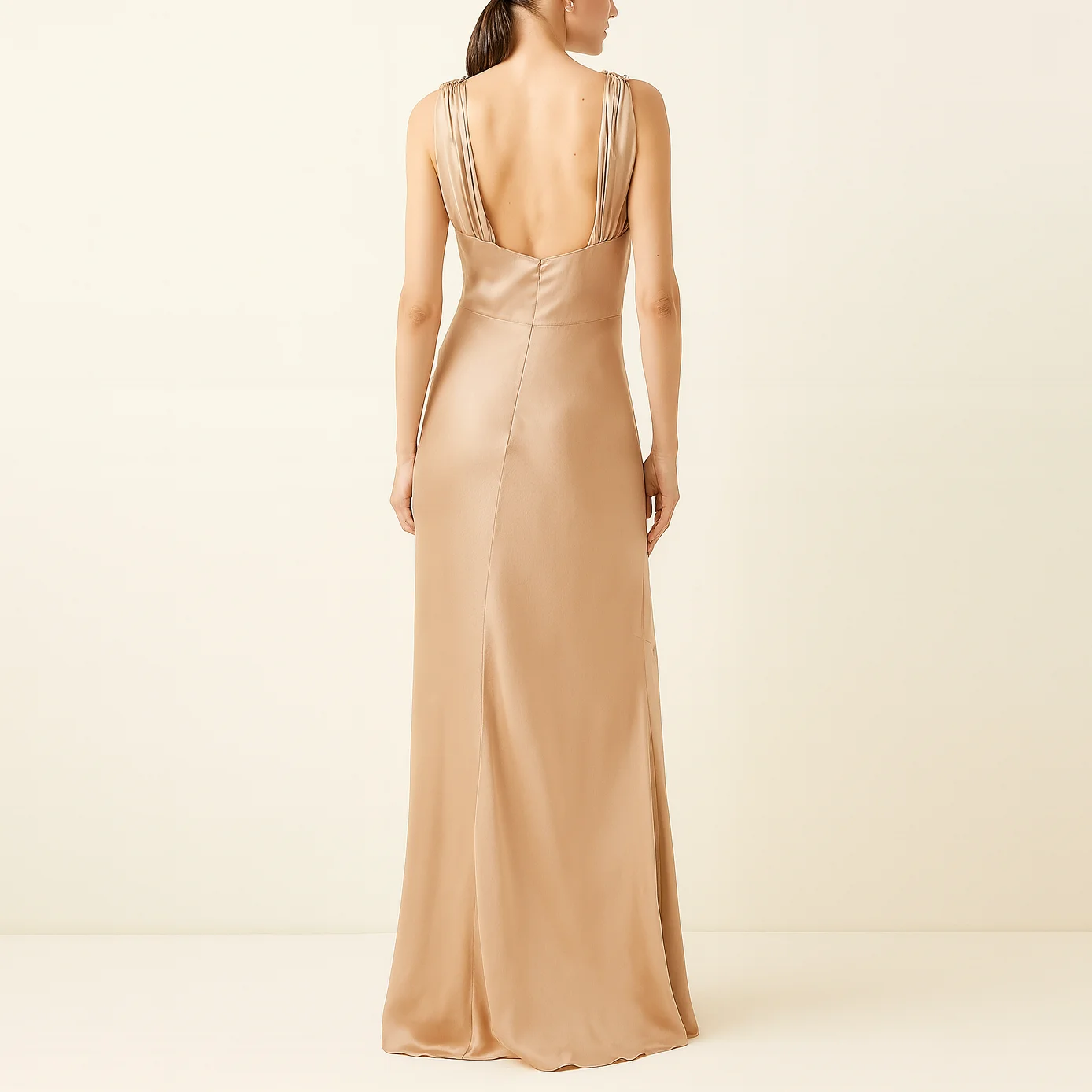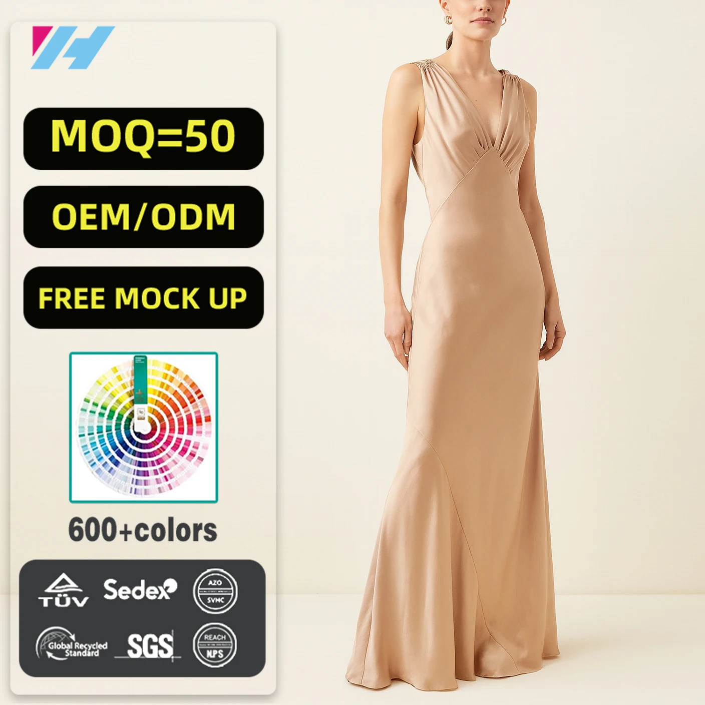 Custom High Quality Hot Sale Sleeveless Casual Party Summer Flounce Hem Maxi Satin Dress