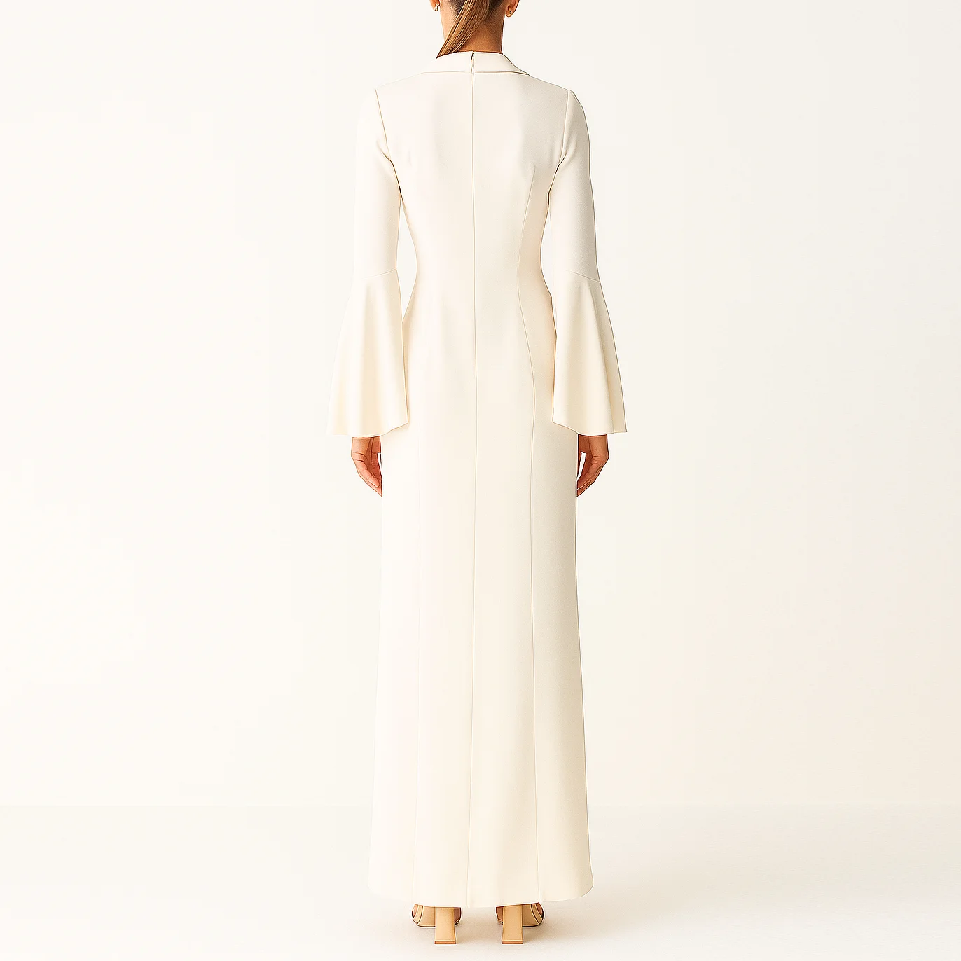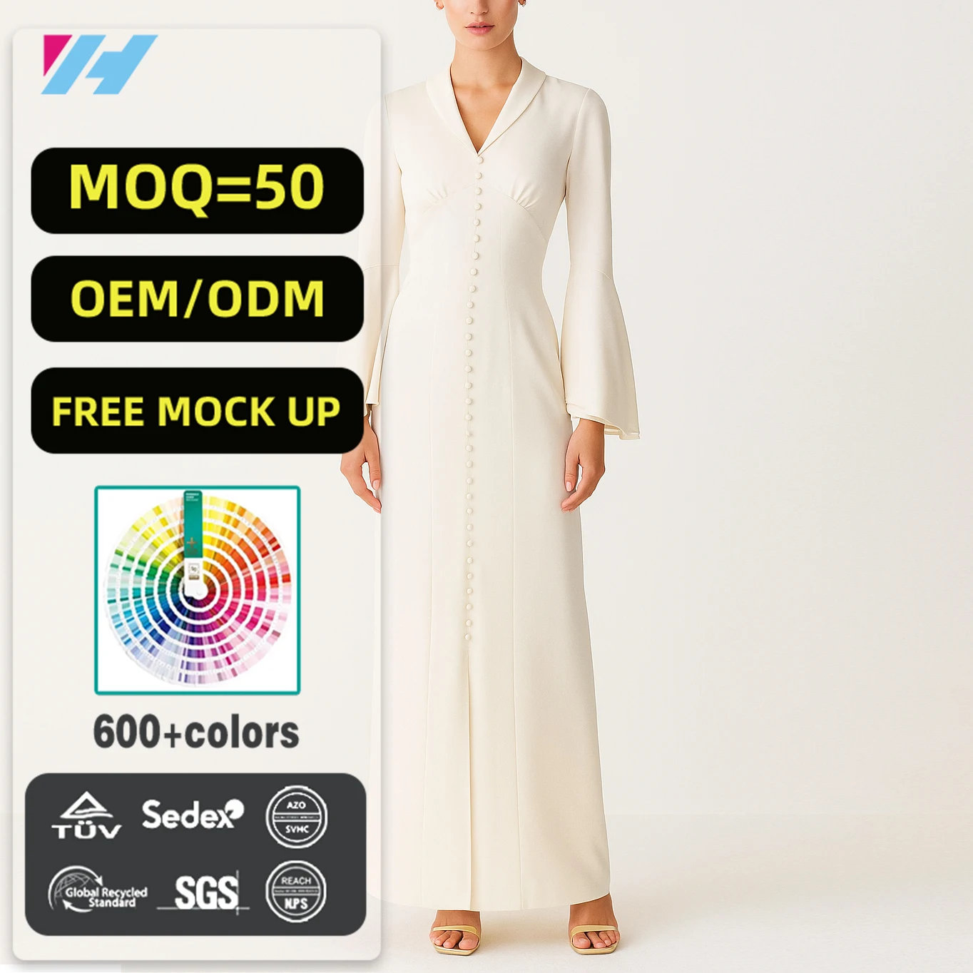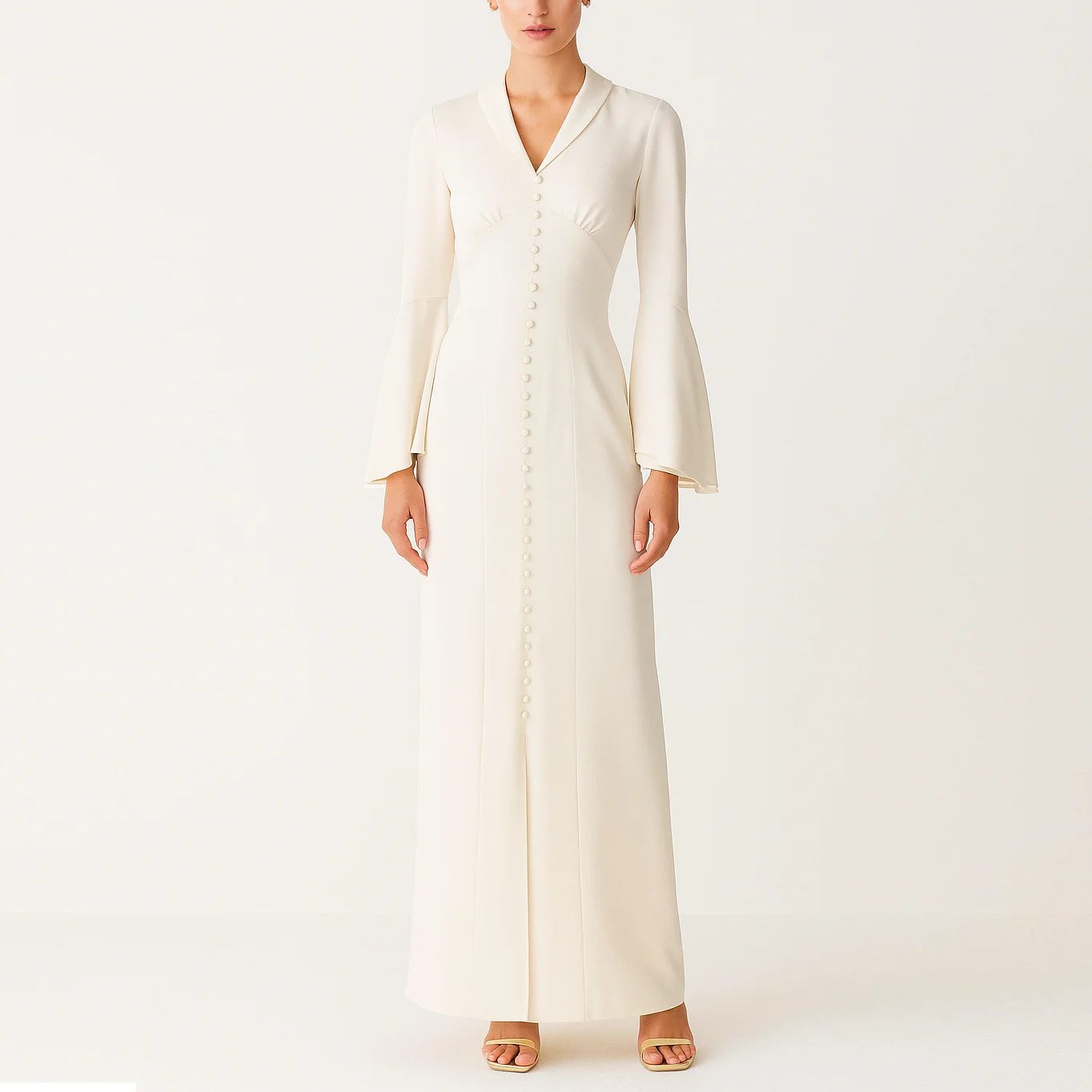 Custom Wholesale Chic Elegant Ladies Women Long Sleeve Flare V-neck Maxi Dress