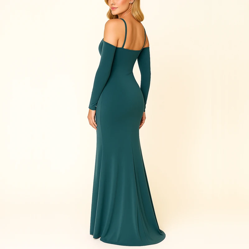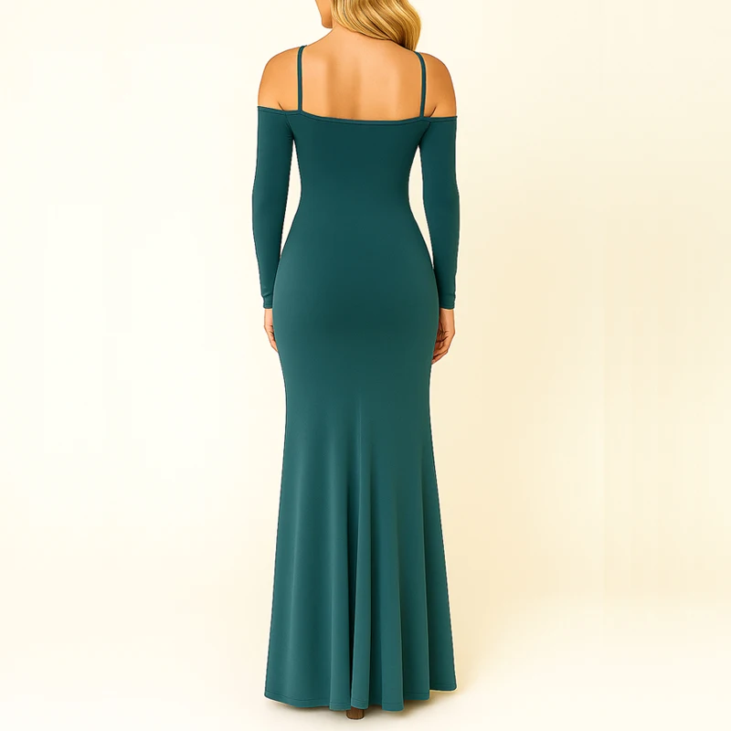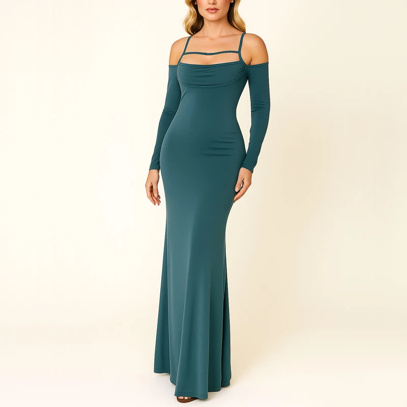 ZYHT 73902 Dark Green Blue Long Sleeve Simple Elegant Evening Dress Customize High End Women Clothing Manufacturer