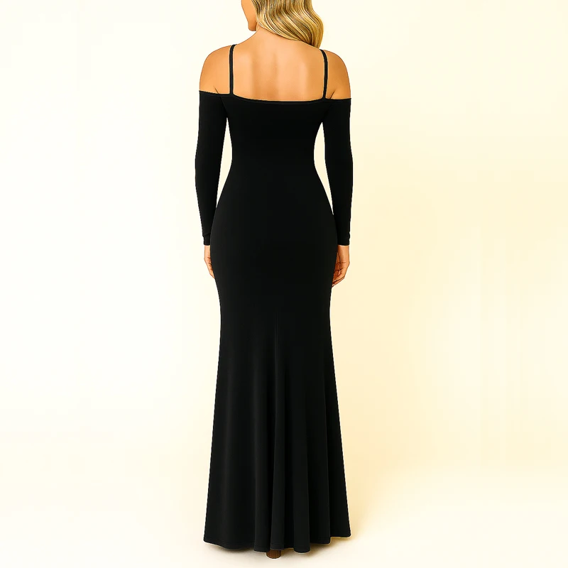 ZYHT 73905 Dusty Rose Off-The-Shoulder Long Sleeve Stretch Jersey Dress Ruched Bodice Floor Length Fish Tail Maxi Dress