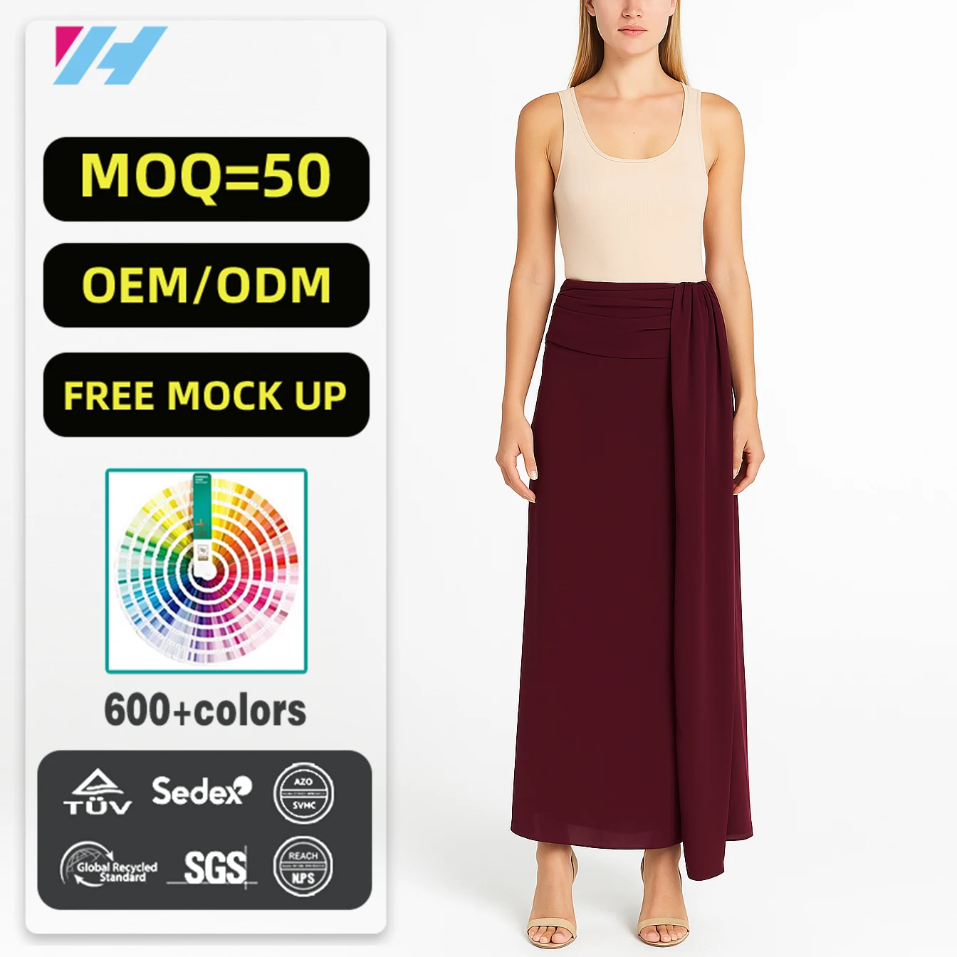 Custom Wholesale High Waist Casual Summer Wrap Ladies Women Chiffon Long Skirt