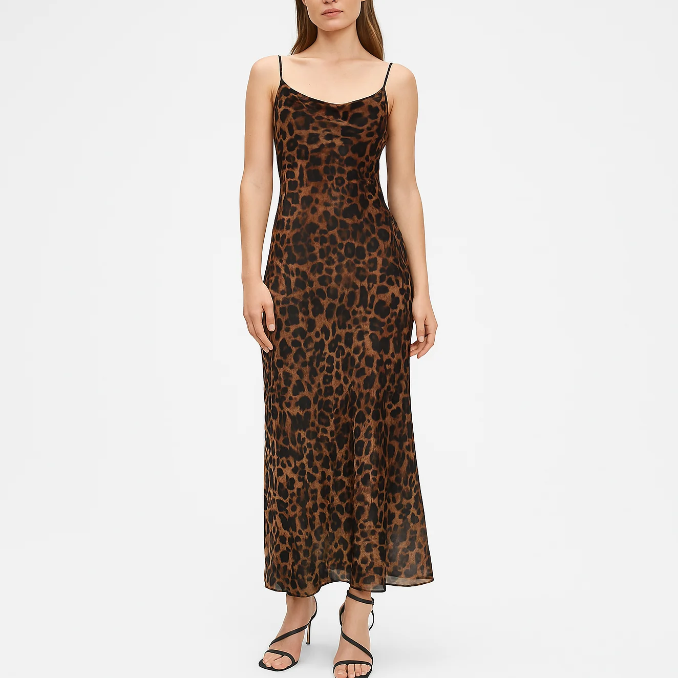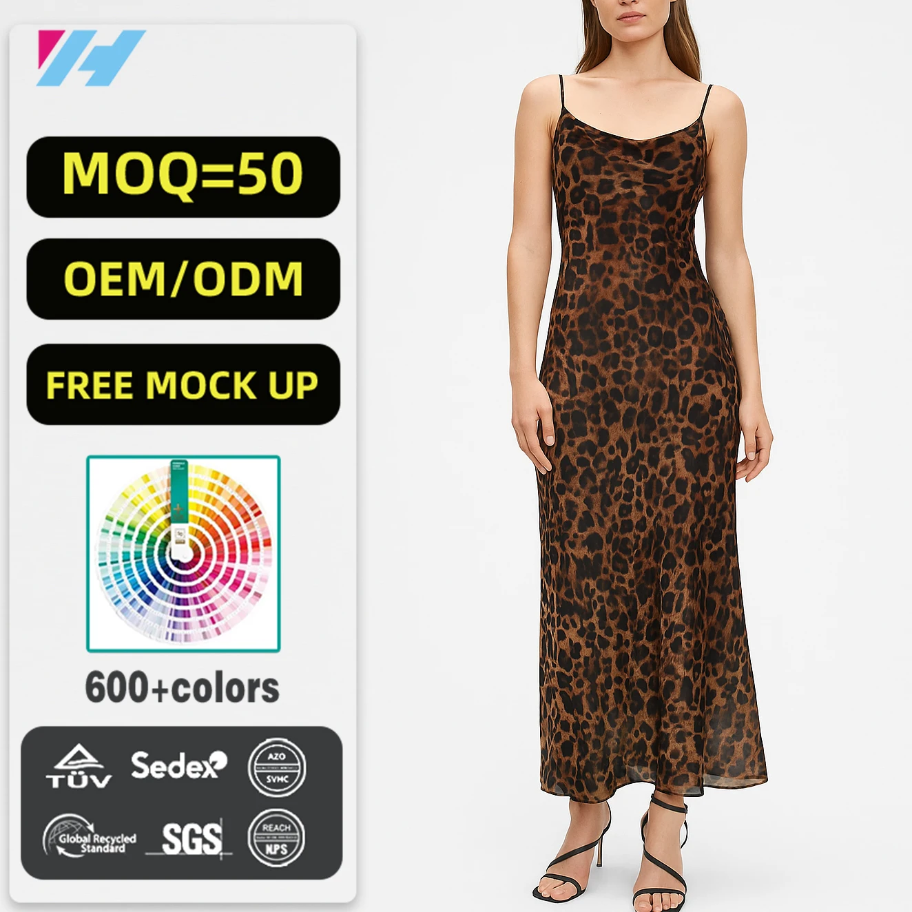 Custom Wholesale Sexy Elegant Ladies Chiffon Leopard Print Long Dress for Women