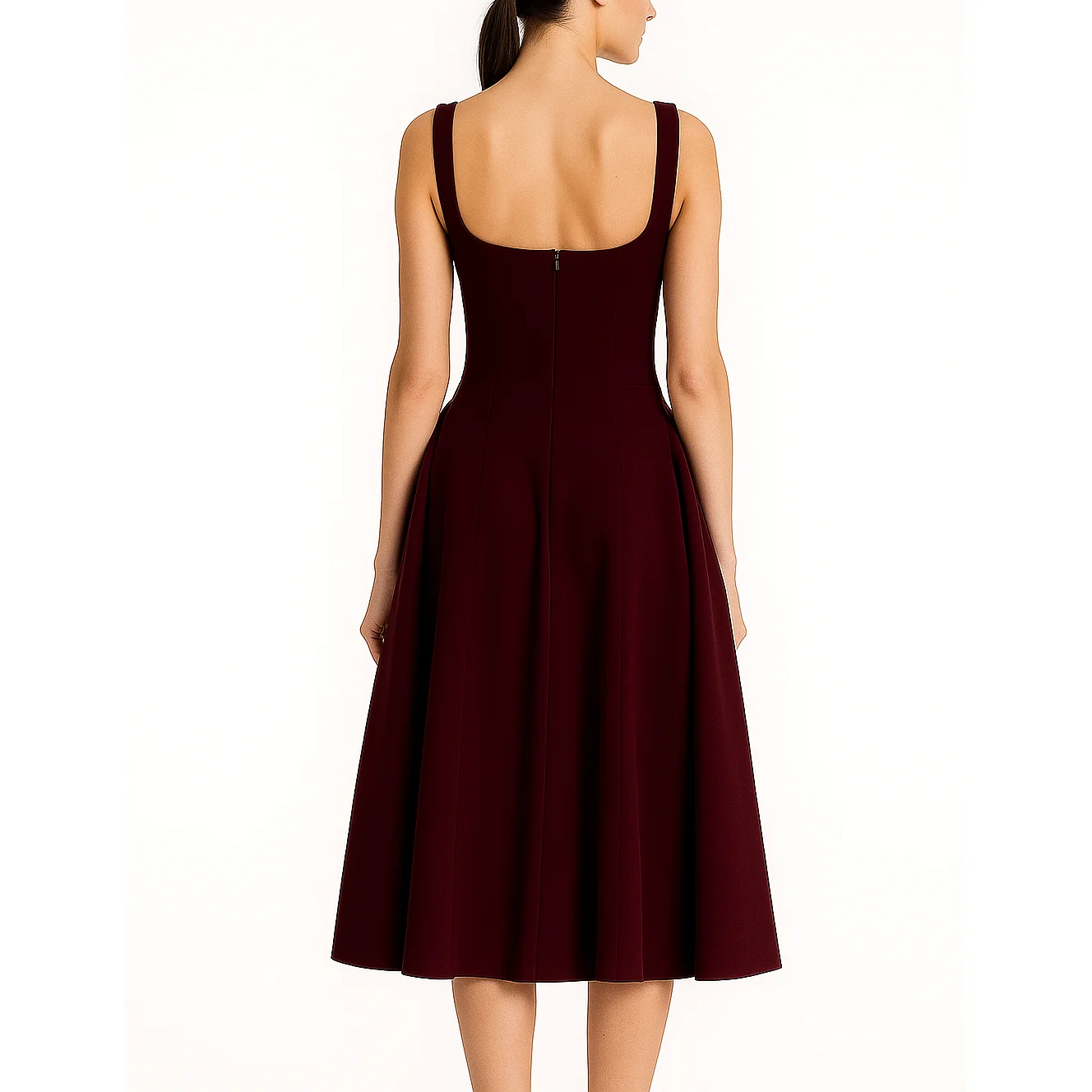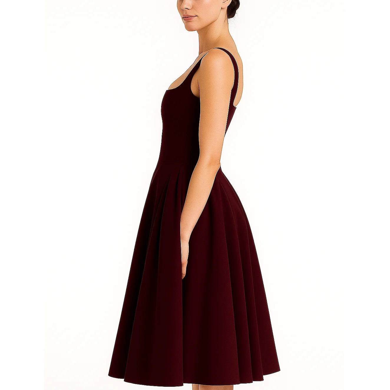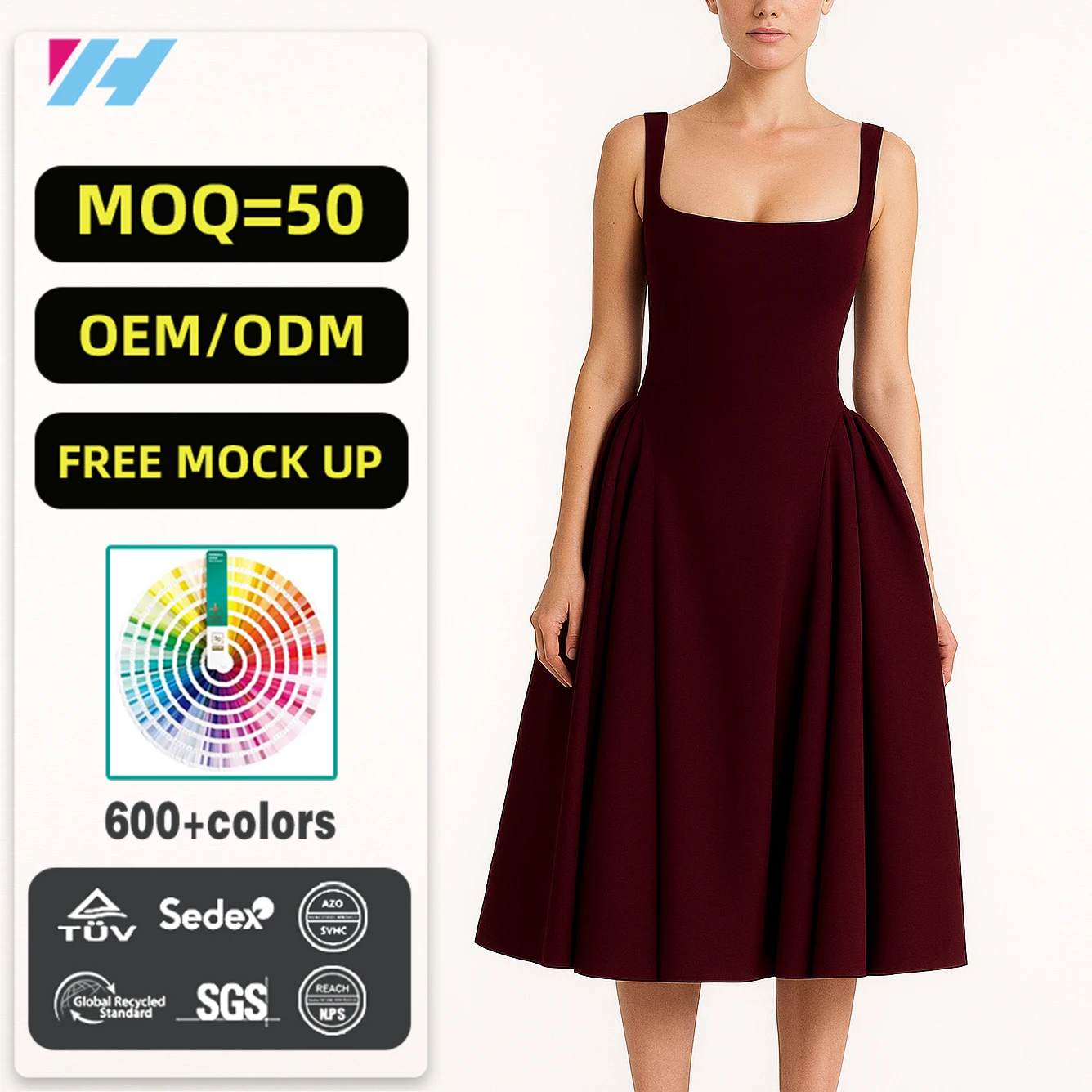 Custom Wholesale square Neck Empire Waist Trendy Elegant Party Ladies A-line Long Midi Pleated Dress for Women