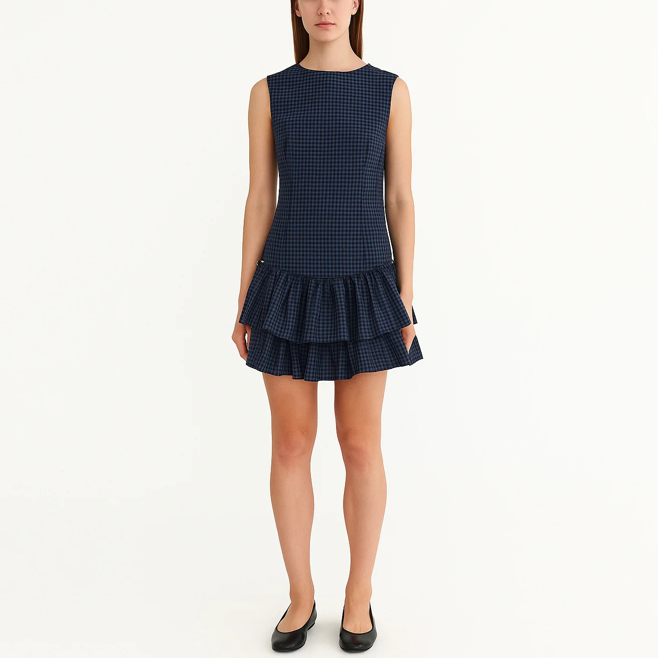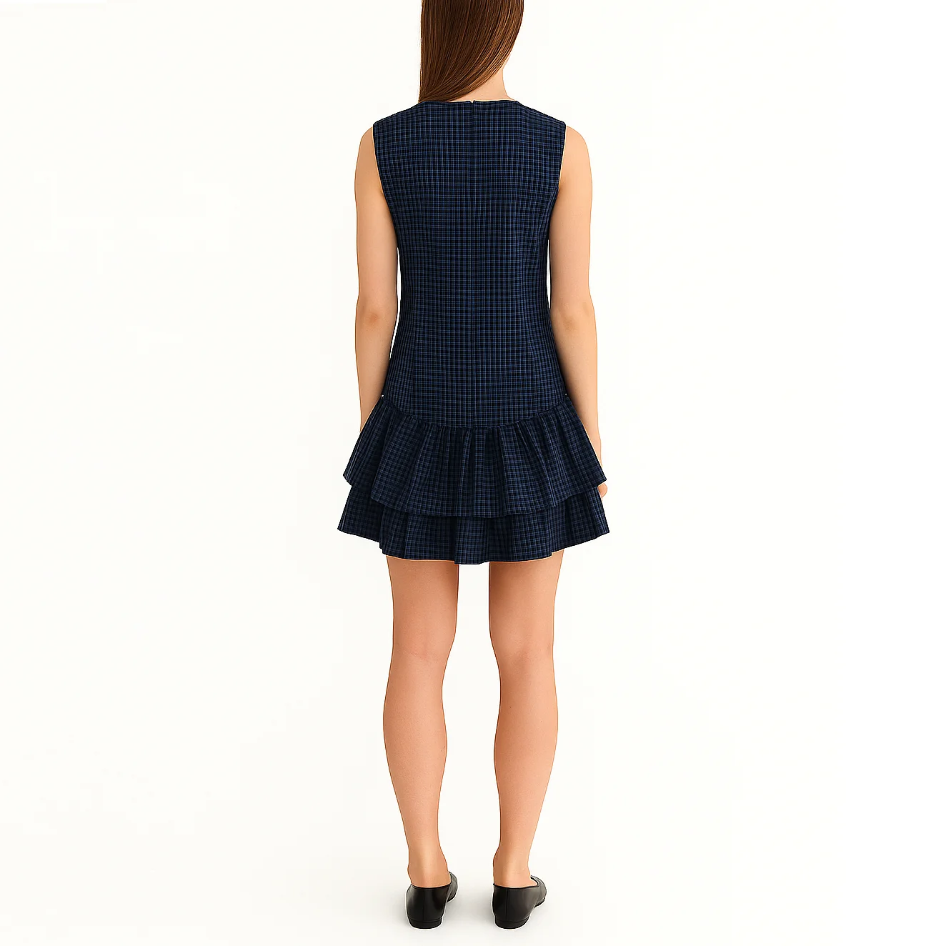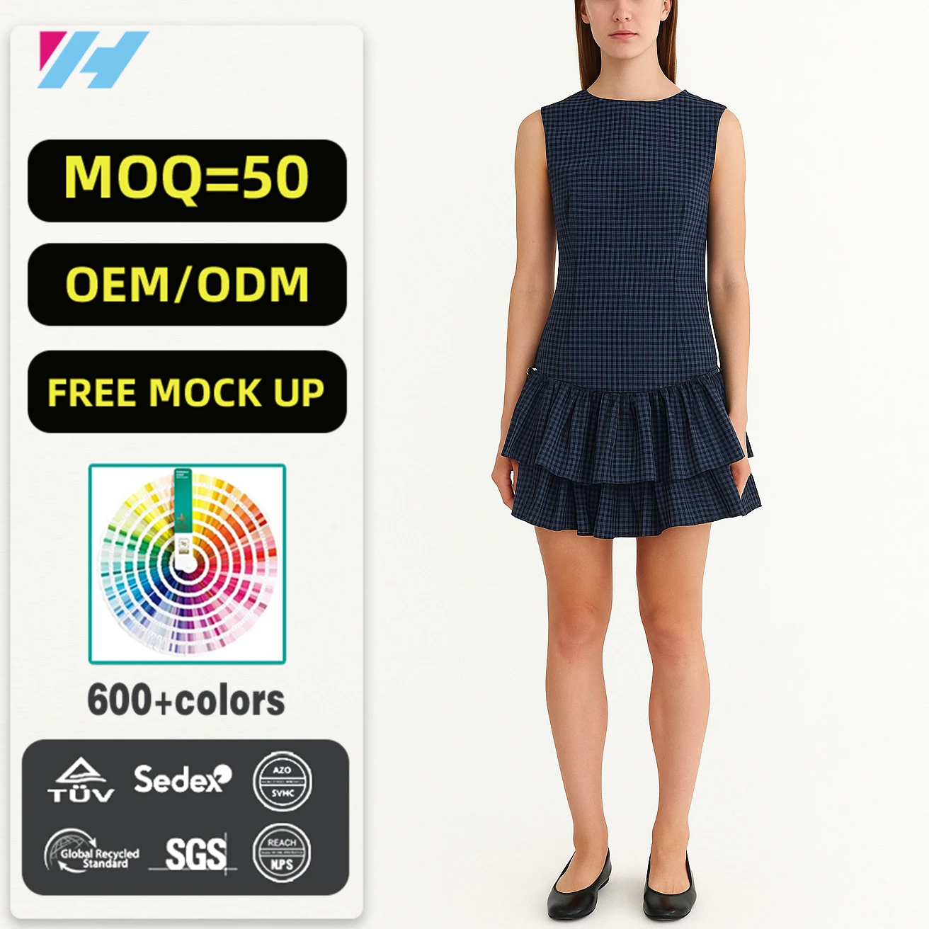 Custom Wholesale Casual Summer Ladies Women Plaid Ruffle Mini Dress
