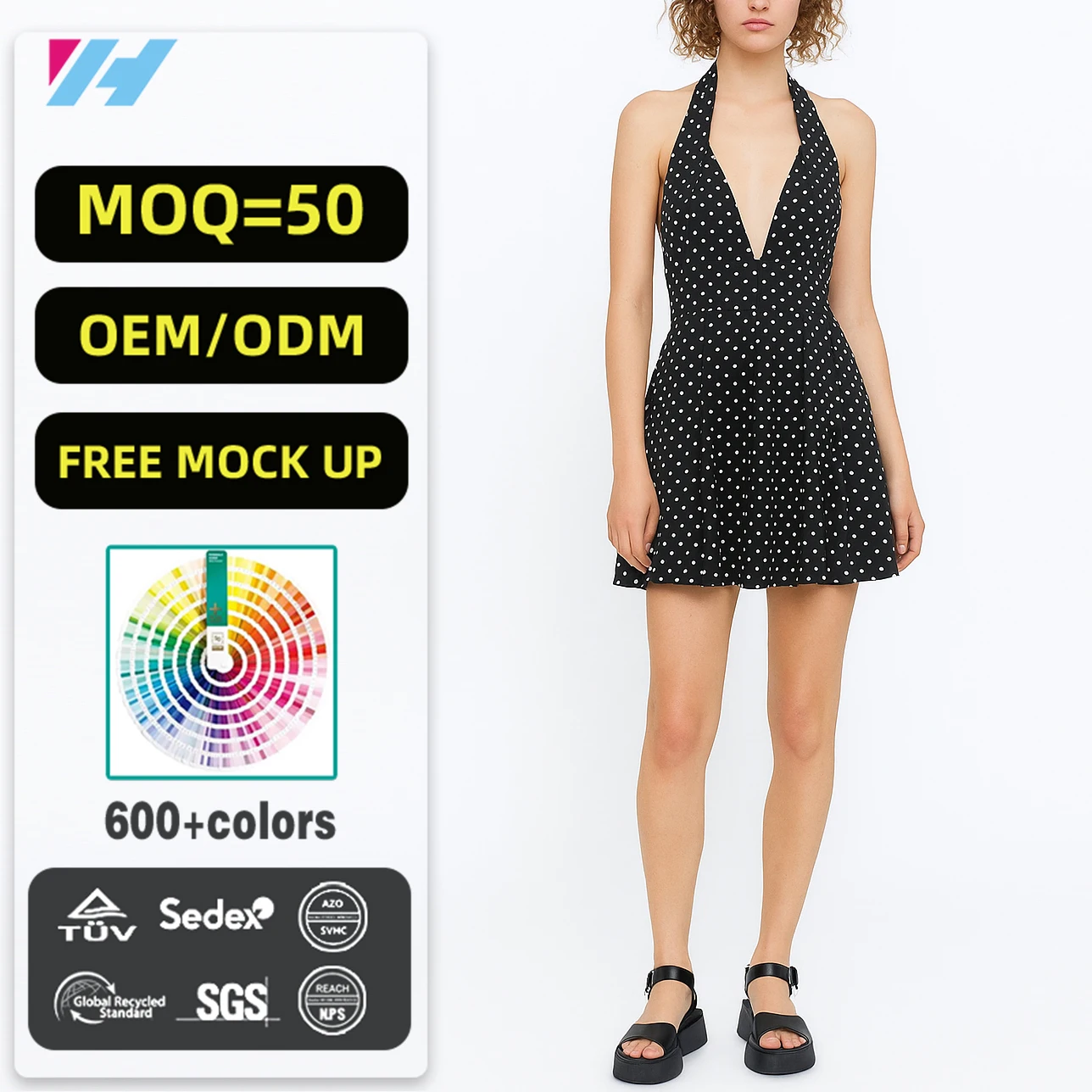 Custom Casual Ladies Women Sexy A-line Halter Backless Polka Dot Mini Dress