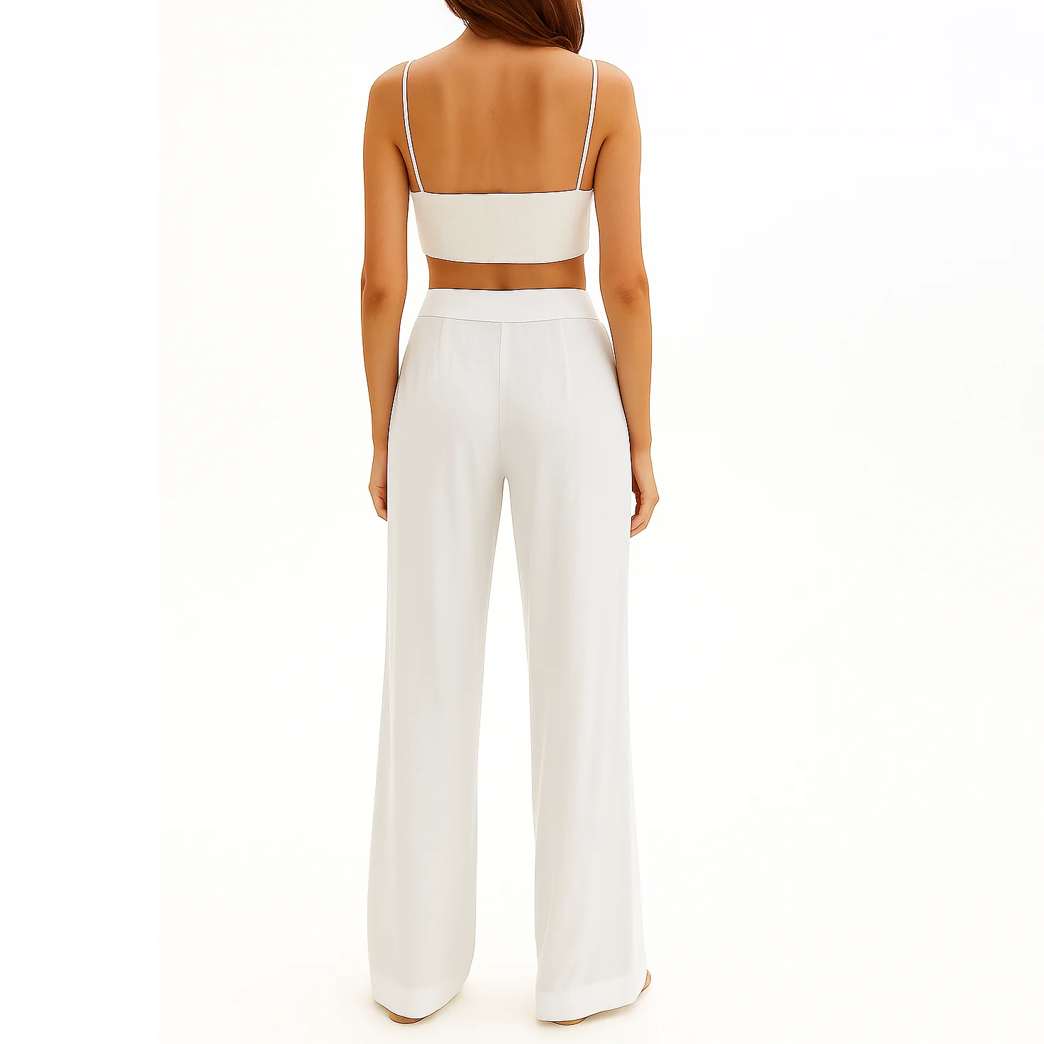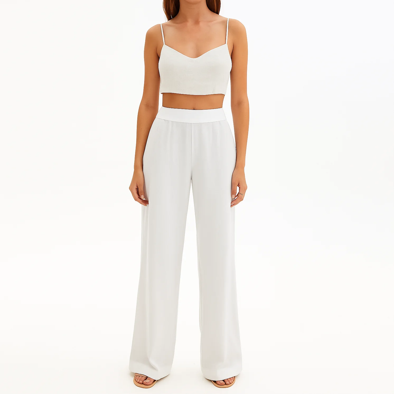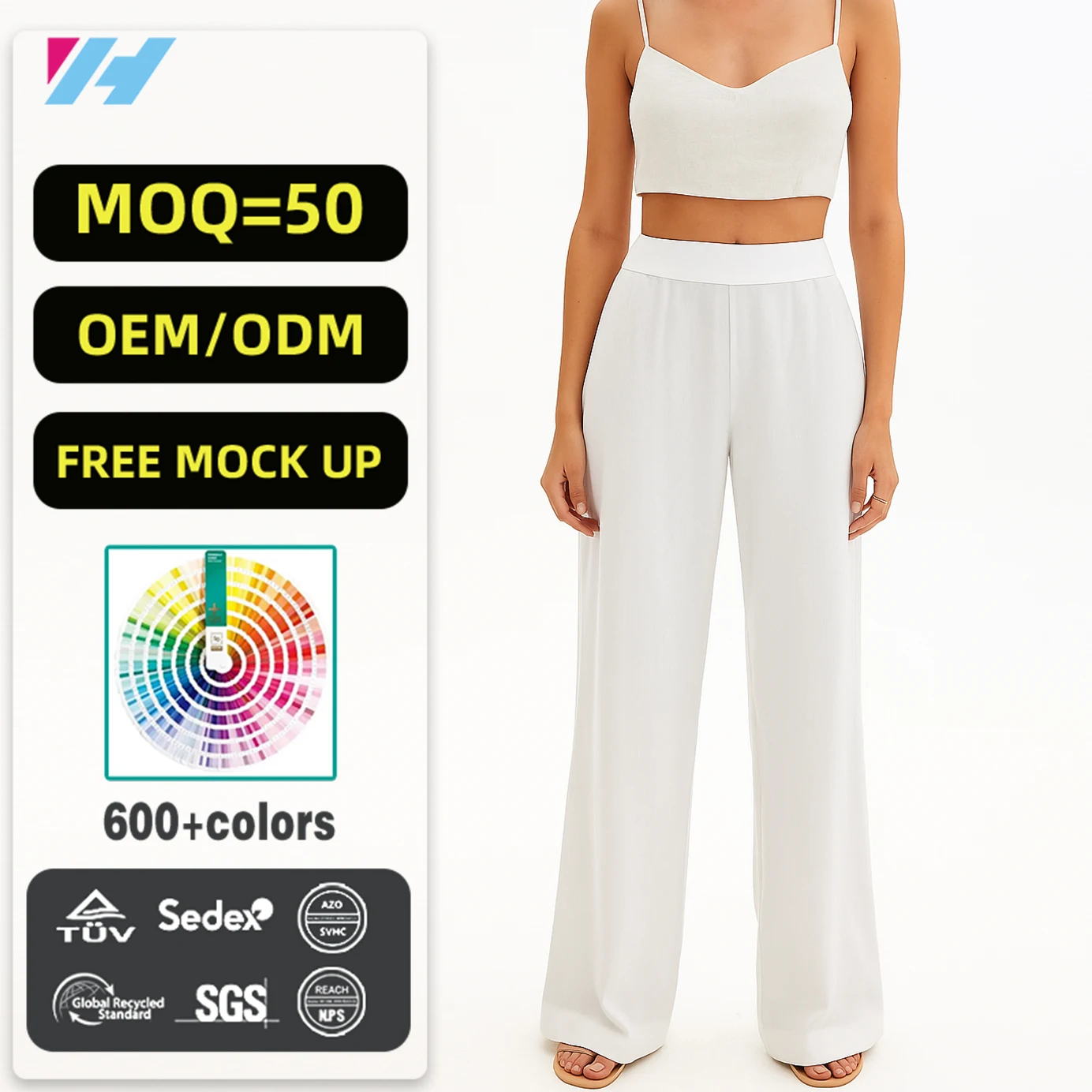 Oem Custom Wholesale Casual Ladies Wide Leg Beach White Trousers Cotton Linen Pants Women