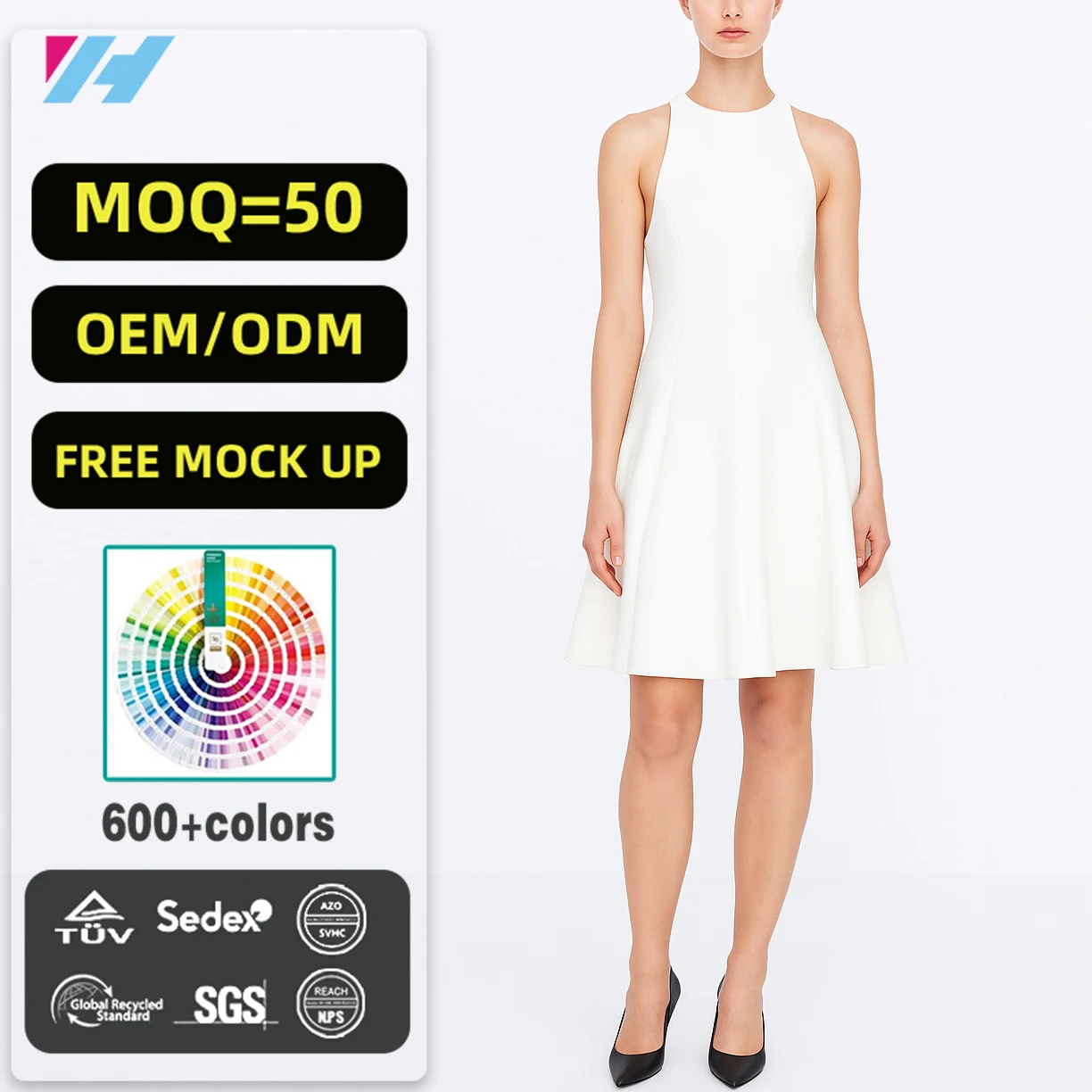 Custom Casual Elegant Ladies Women White Sleeveless A-line Flared Short Dress