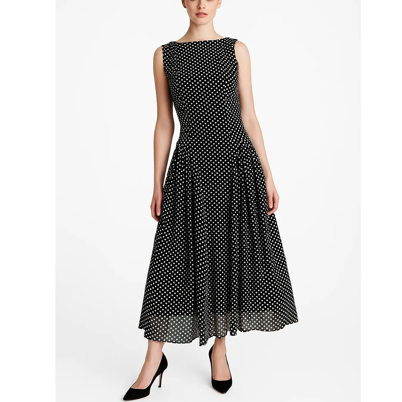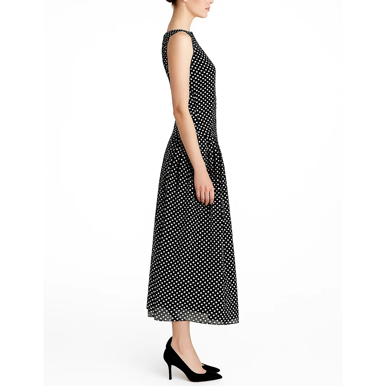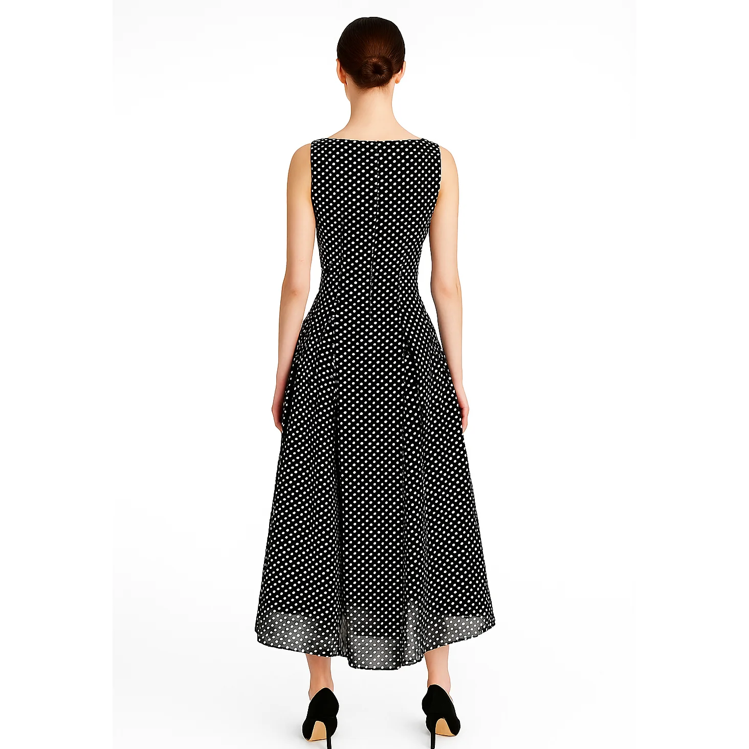 Custom High Quality Elegant Casual A-line Women Ladies Pleated Chiffon Polka Dot Midi Long Dress