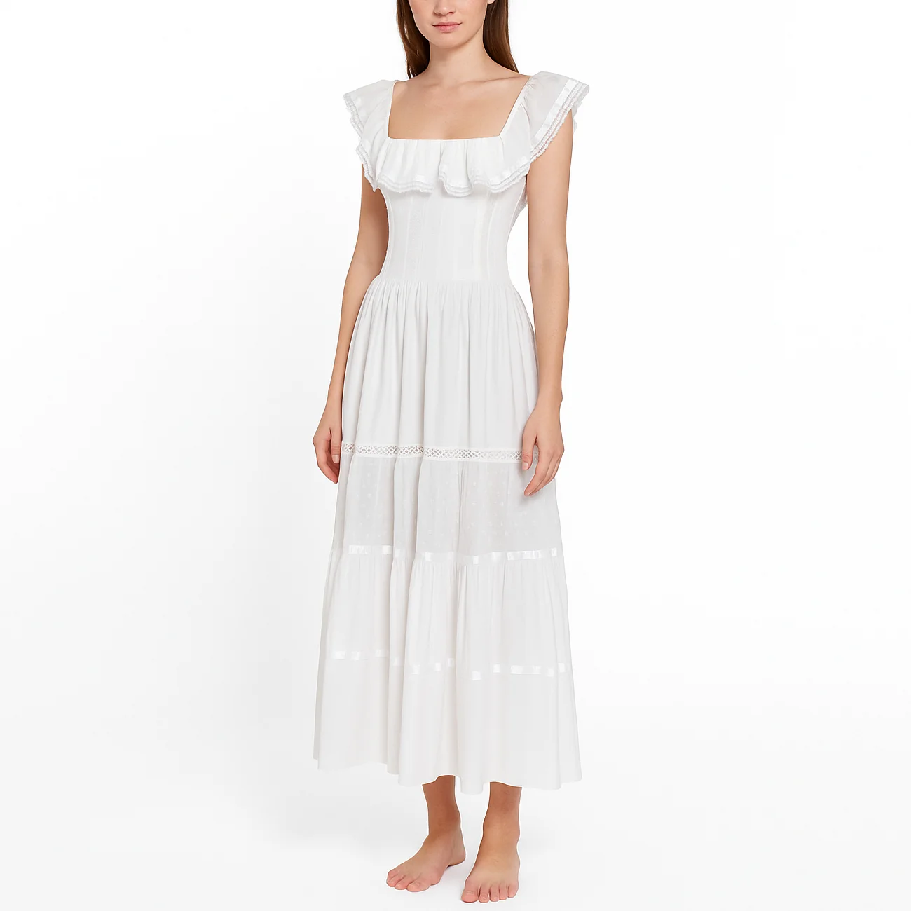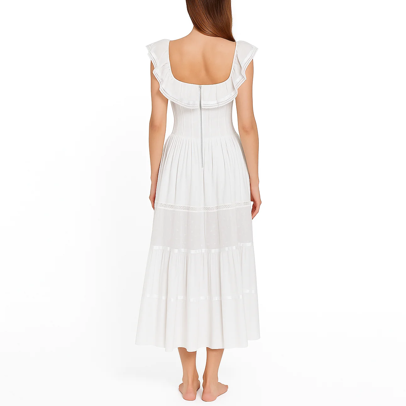 Custom Hot Sale Casual Fashion High Waist square Neck Ruffle Women Ladies Pleated Long Midi Dress