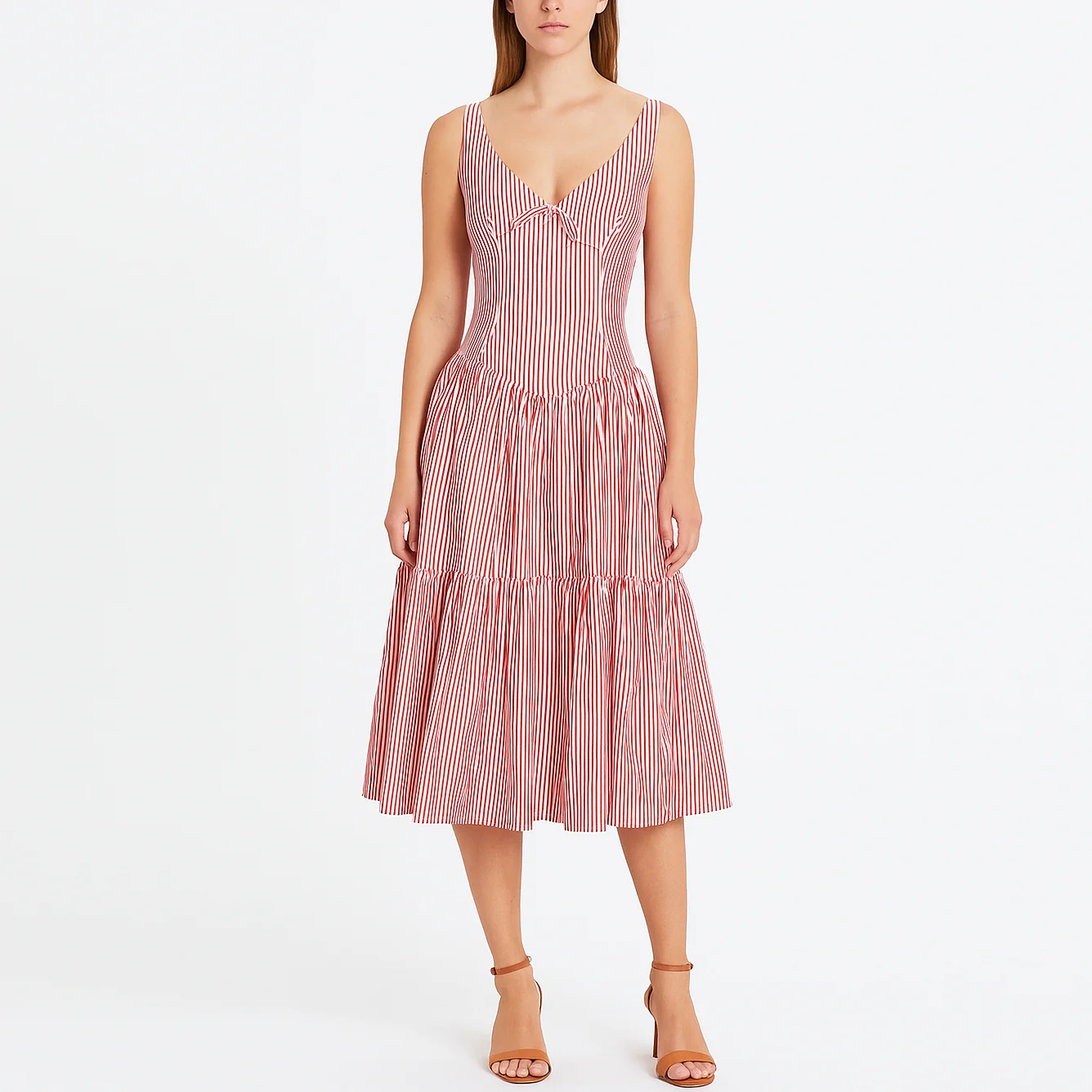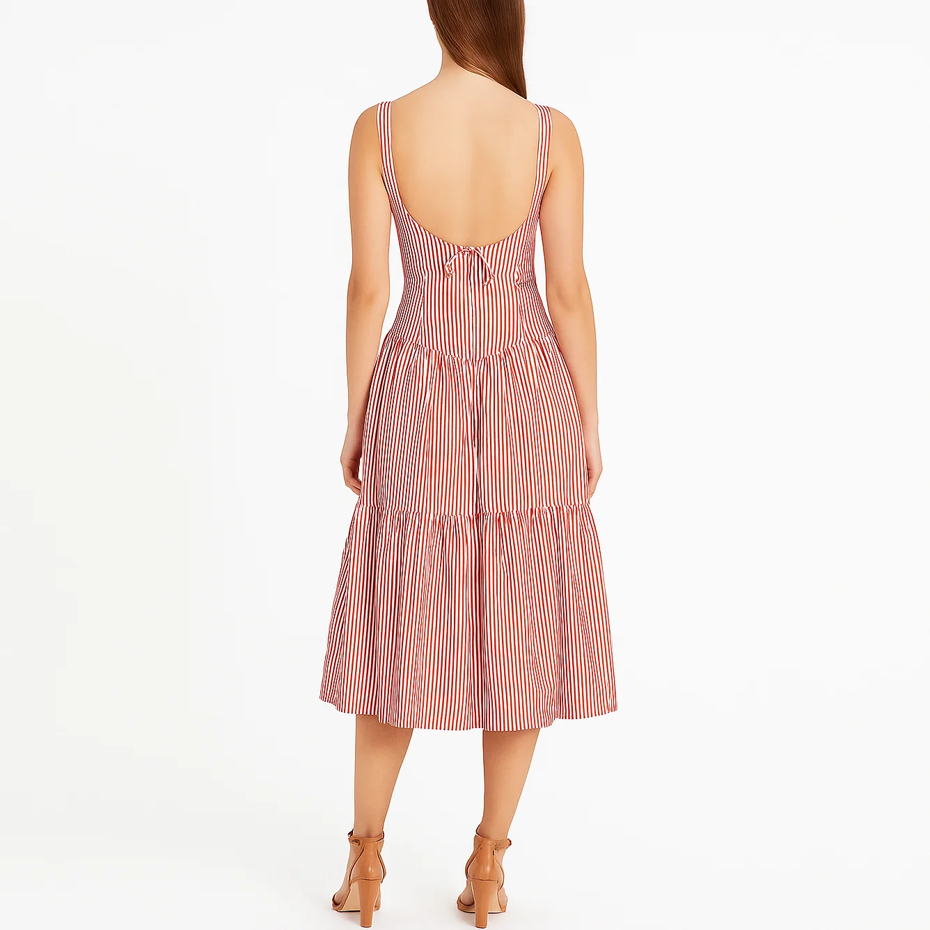 Custom High Quality V-neck Ladies Women Elegant A-line Backless Stripe Long Dress