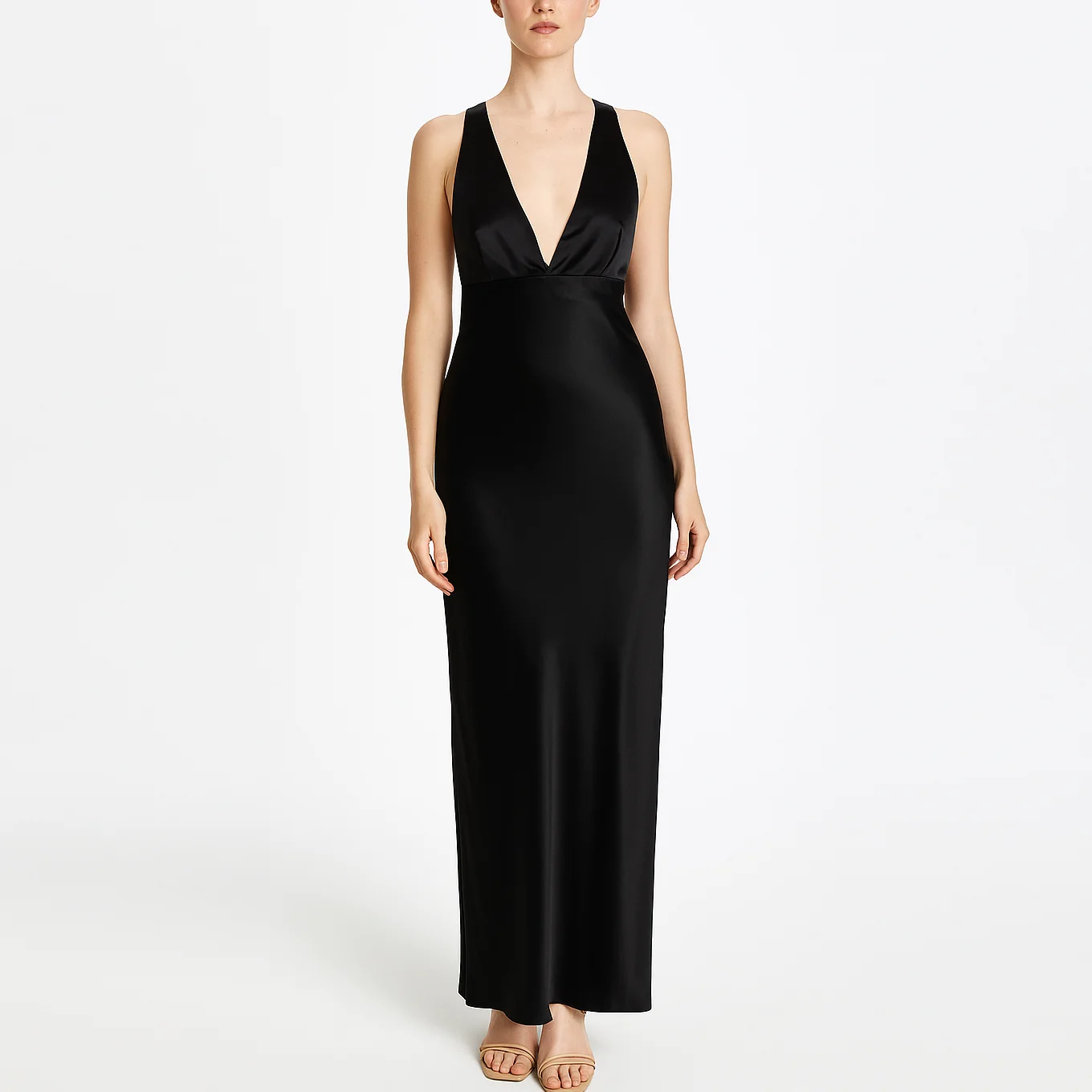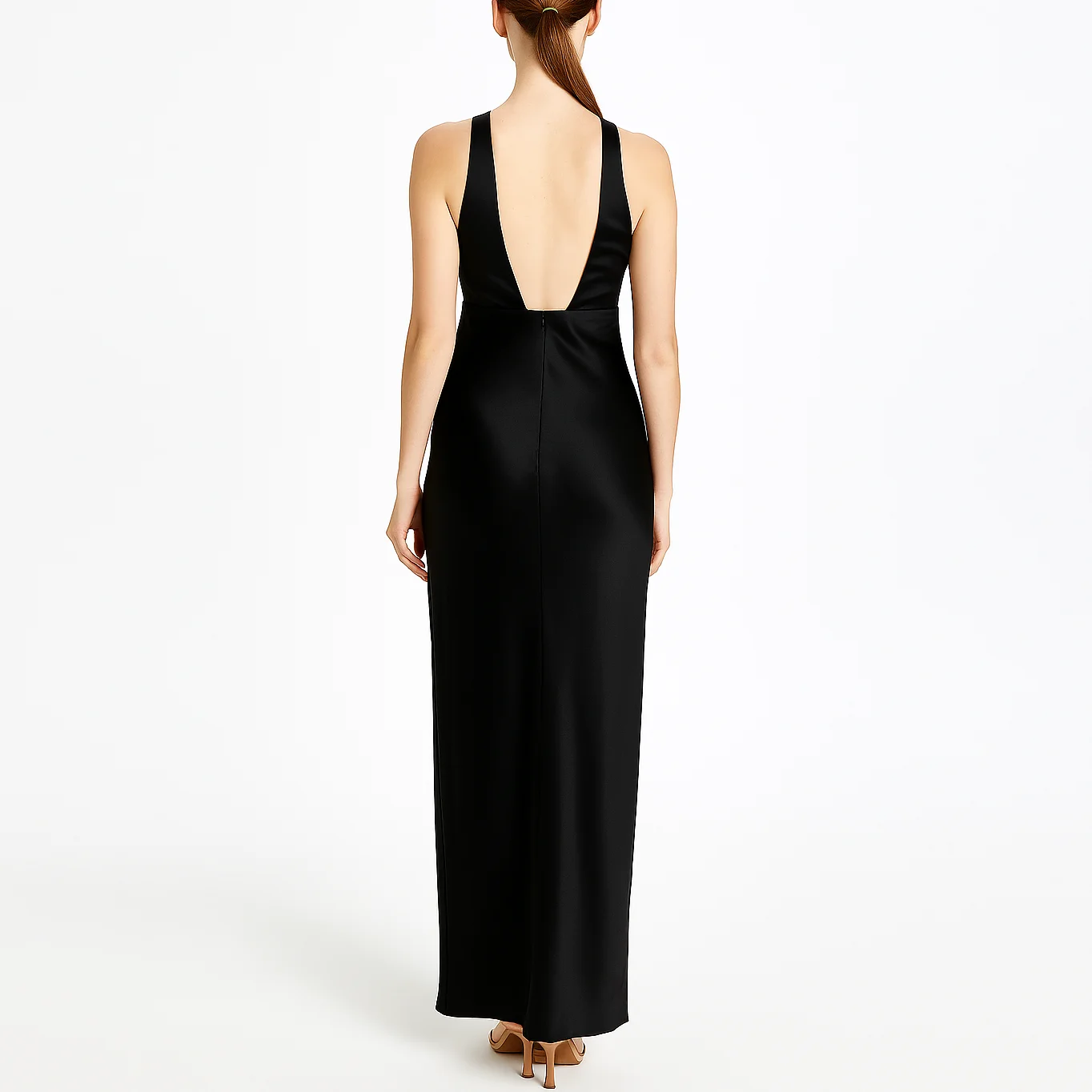 Custom High Quality Sexy Elegant Ladies Maxi Women Sleeveless V-neck Gown Evening Satin Dress