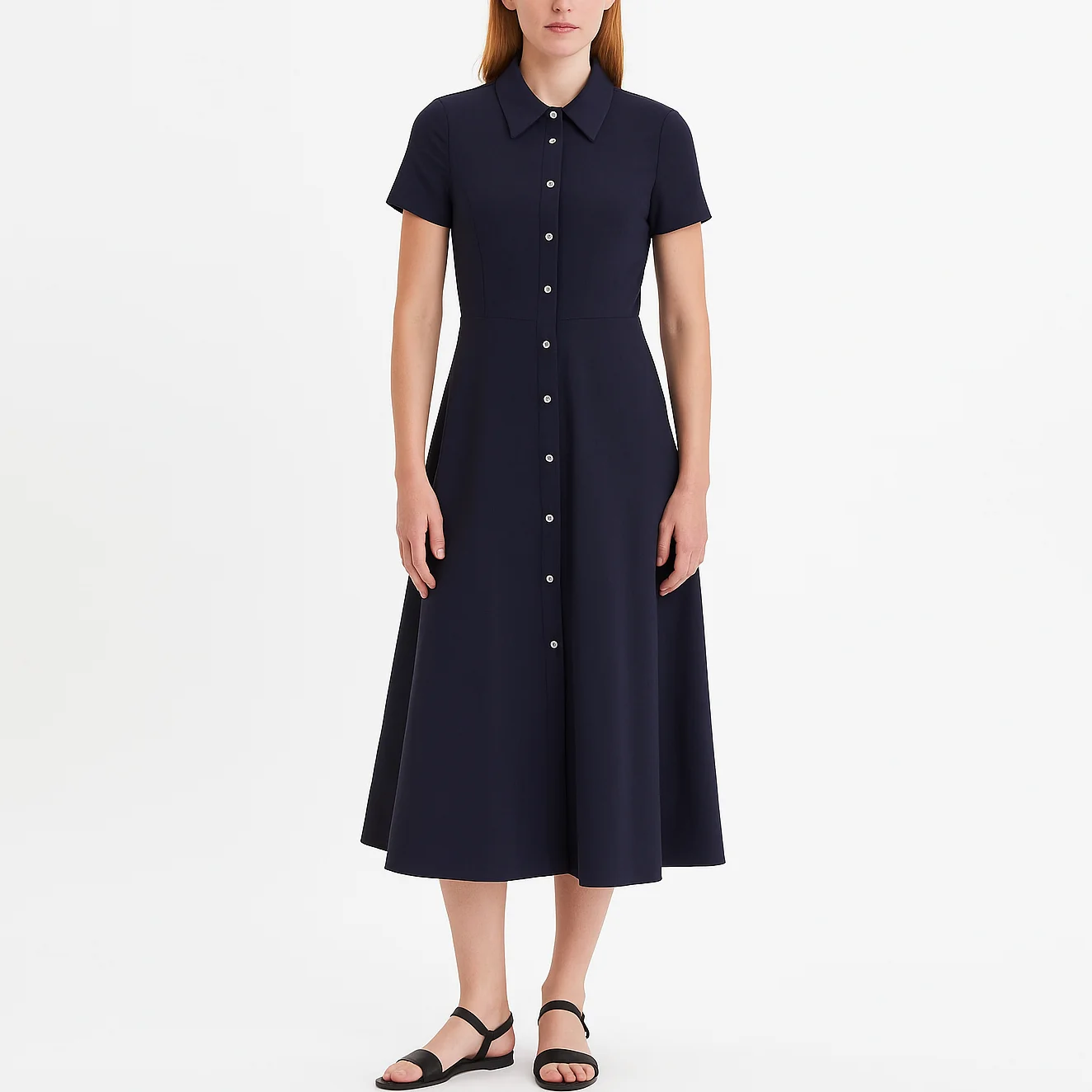 Custom Casual Ladies Short Sleeve A-line Long Shirt Dress for Women