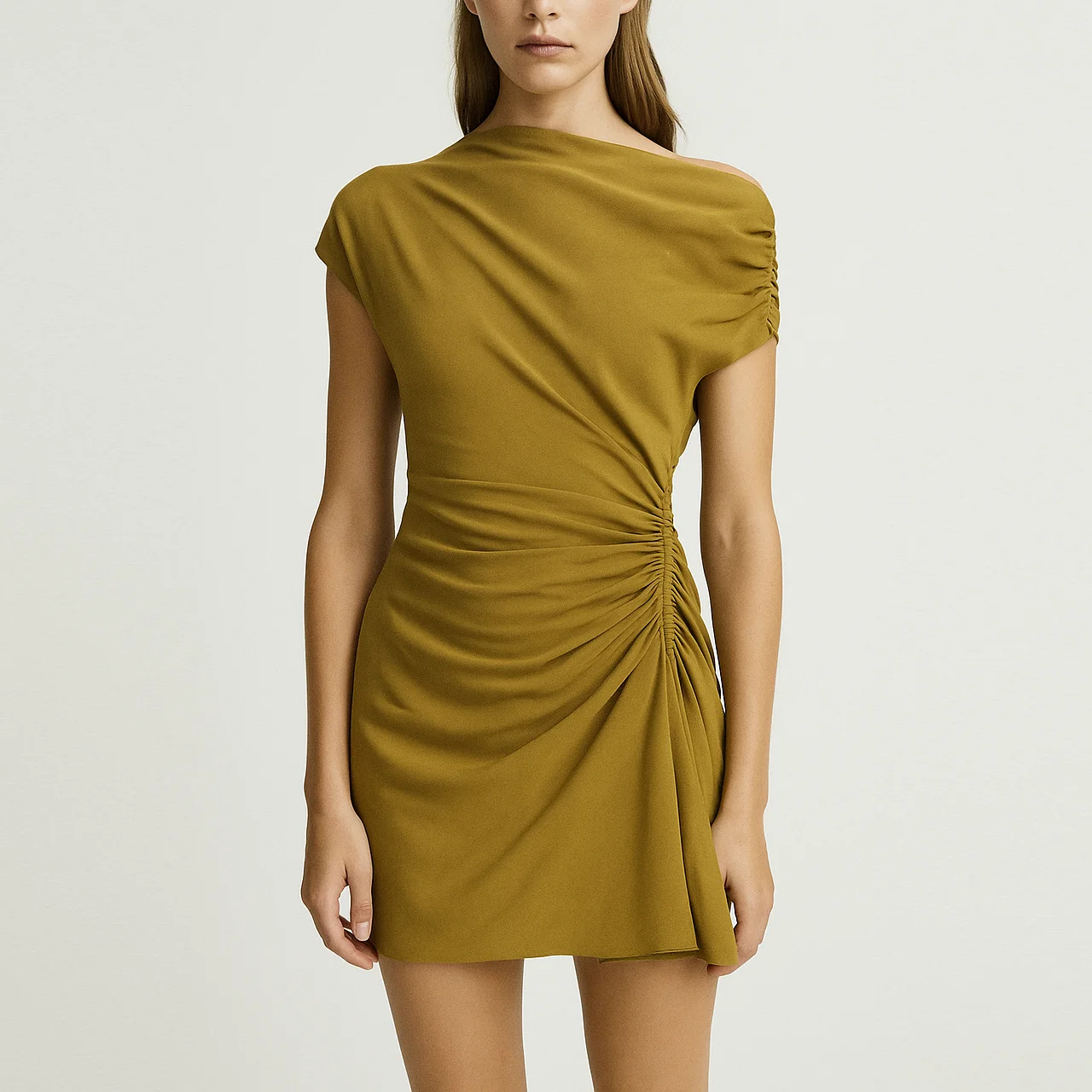 Custom Fashion Ladies Women Ruchen off the Shoulder Mini Dress