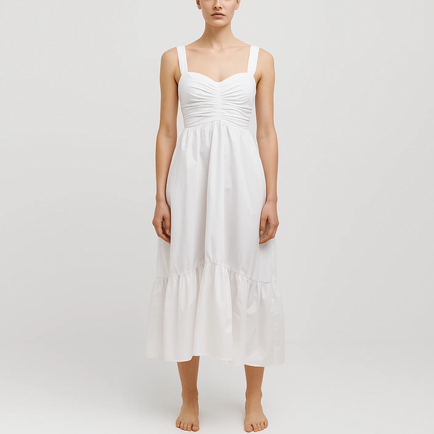Custom Wholesale Summer Casual Ruched Midi A-line Women White Dress