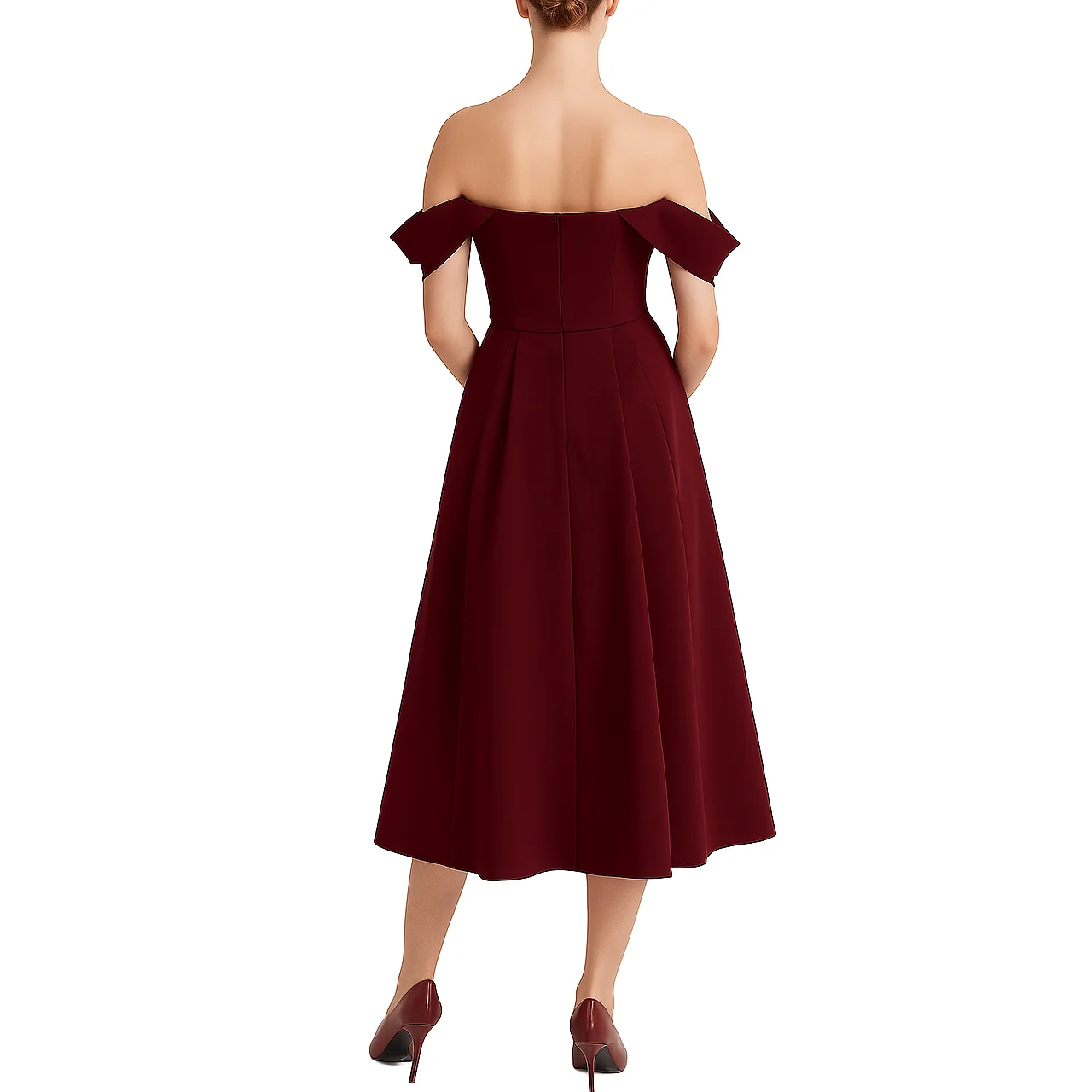 Custom Wholesale Fashion Ladies Women off the Shoulder Pleated Midi Long Dress