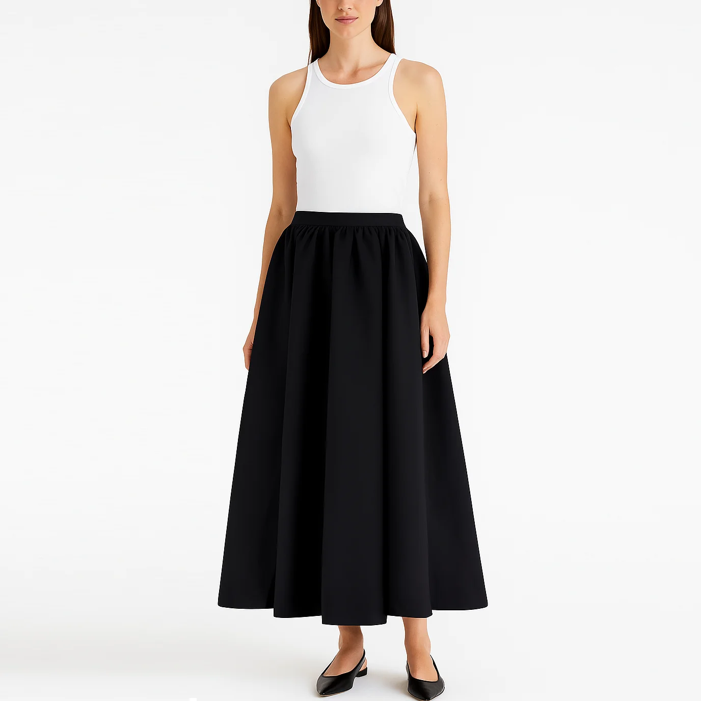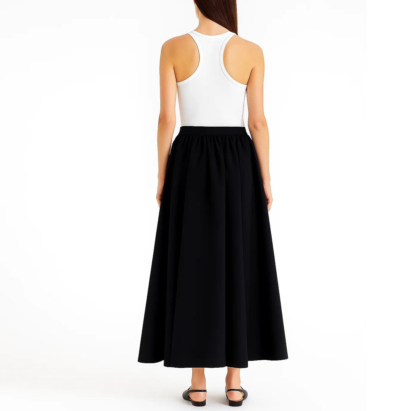 Custom Summer High Waist A-line Ladies Black Midi Long Skirts for Women