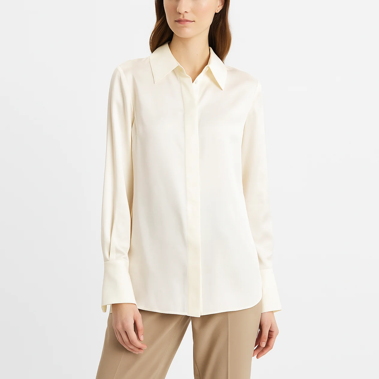 Custom High Quality Casual Satin Shirt Ladies Long Sleeve Silk Blouse for Women