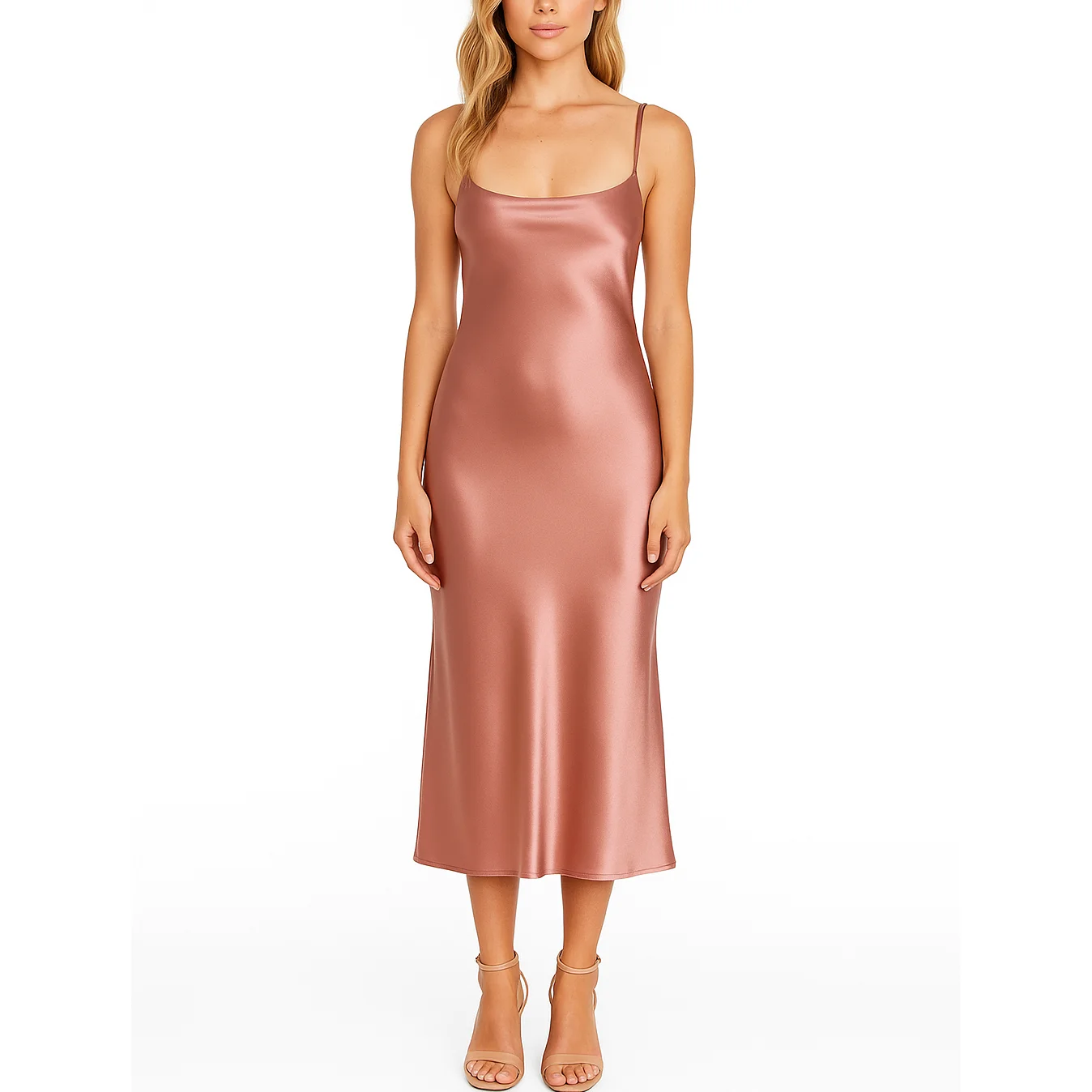Custom Pink Slip Satin Dresses Elegant Lady Midi Long Dress for Women