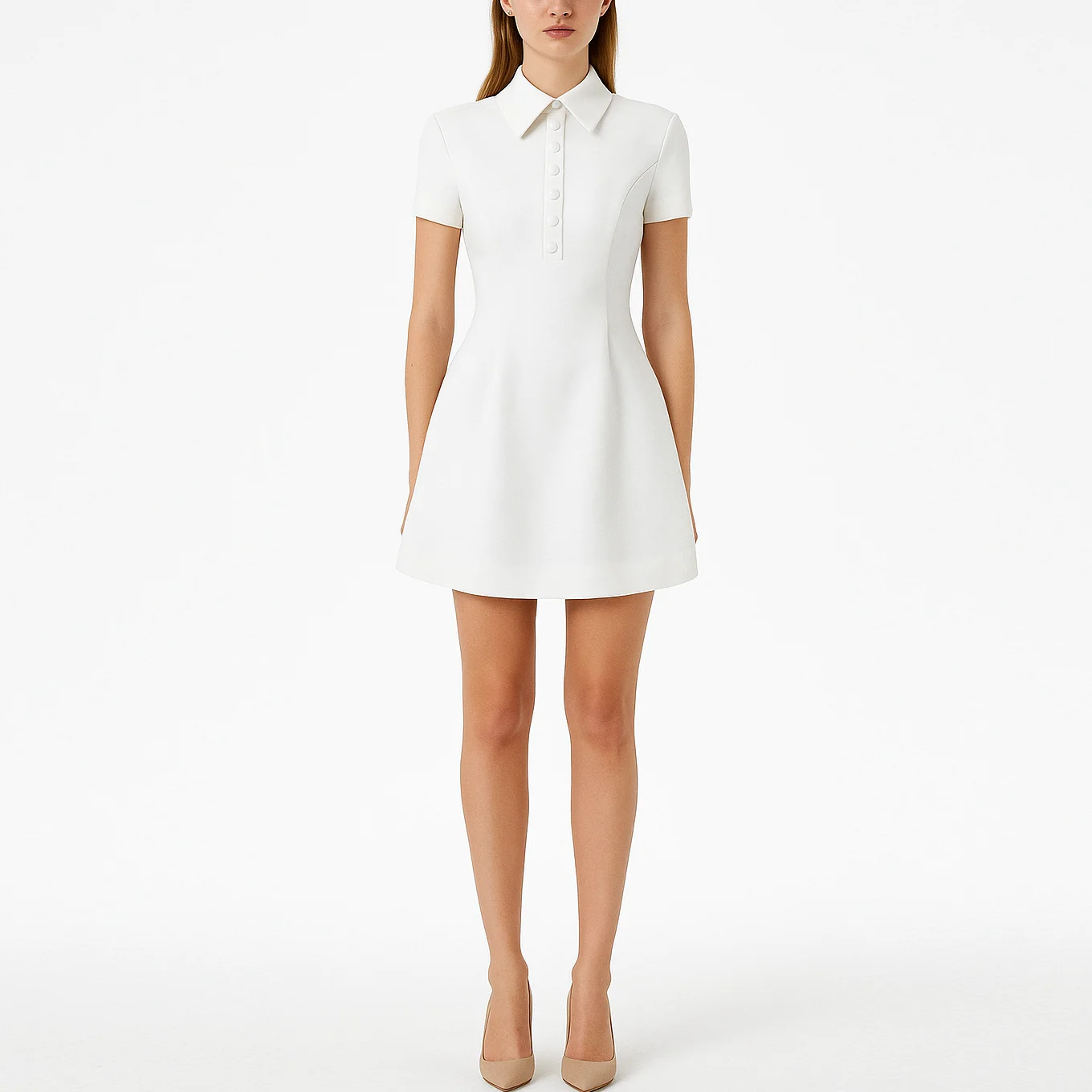 Custom Wholesale Oem Short Sleeve A-line Turn Down Collar White Women Ladies Sexy Mini Dress