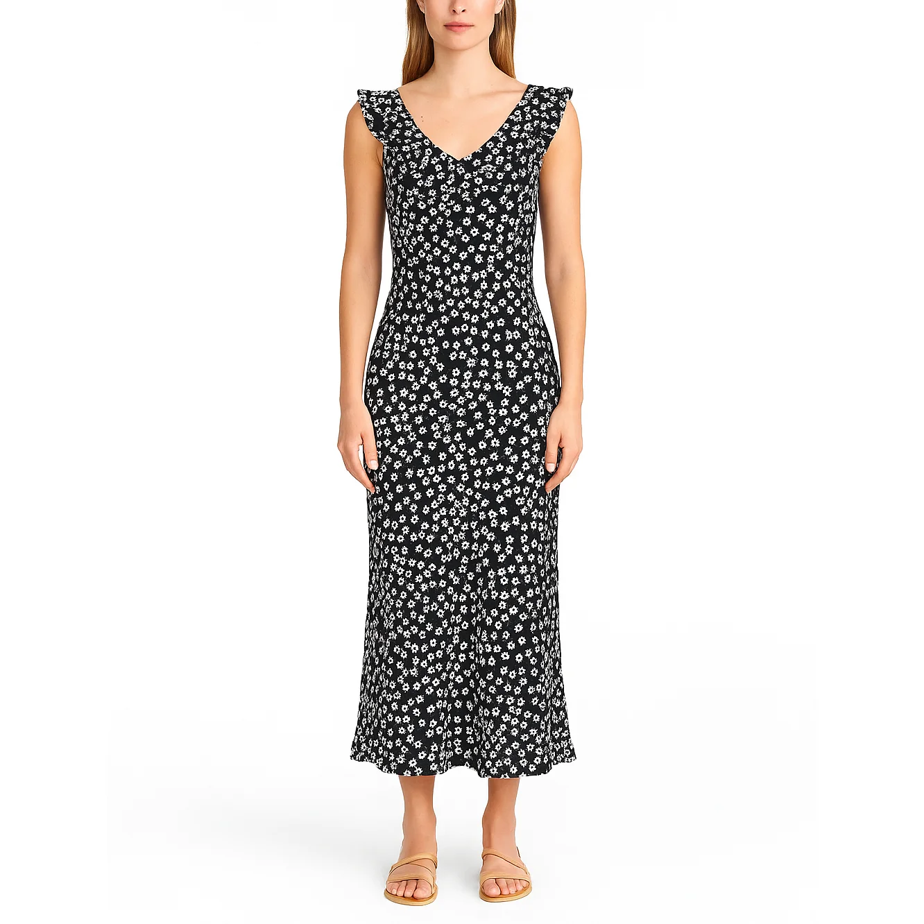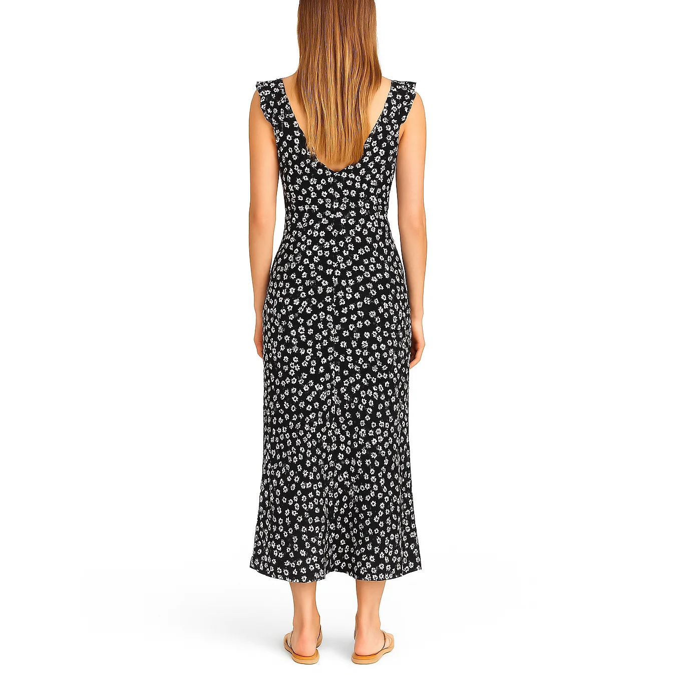 Custom High Quality V-neck Summer Elegant Ladies Casual Women Long Ruffle Floral Print Dress