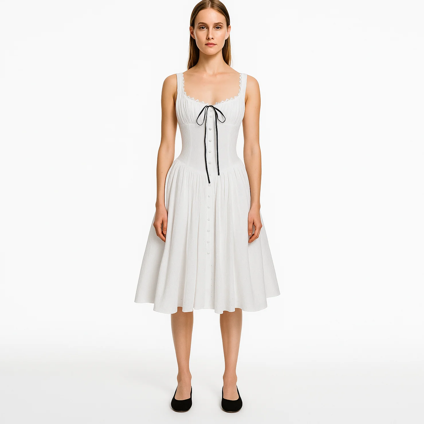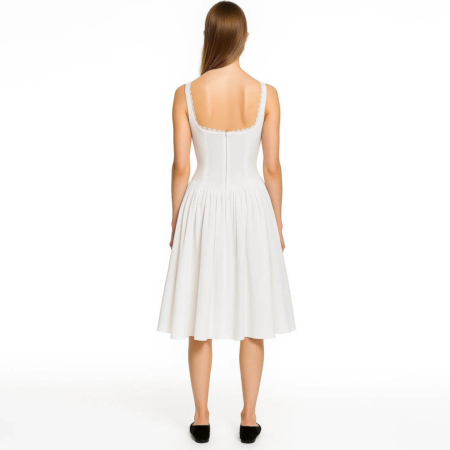 Custom Wholesale square Neck White A-line Sleeveless Pleated Women Sexy Corset Midi Dress