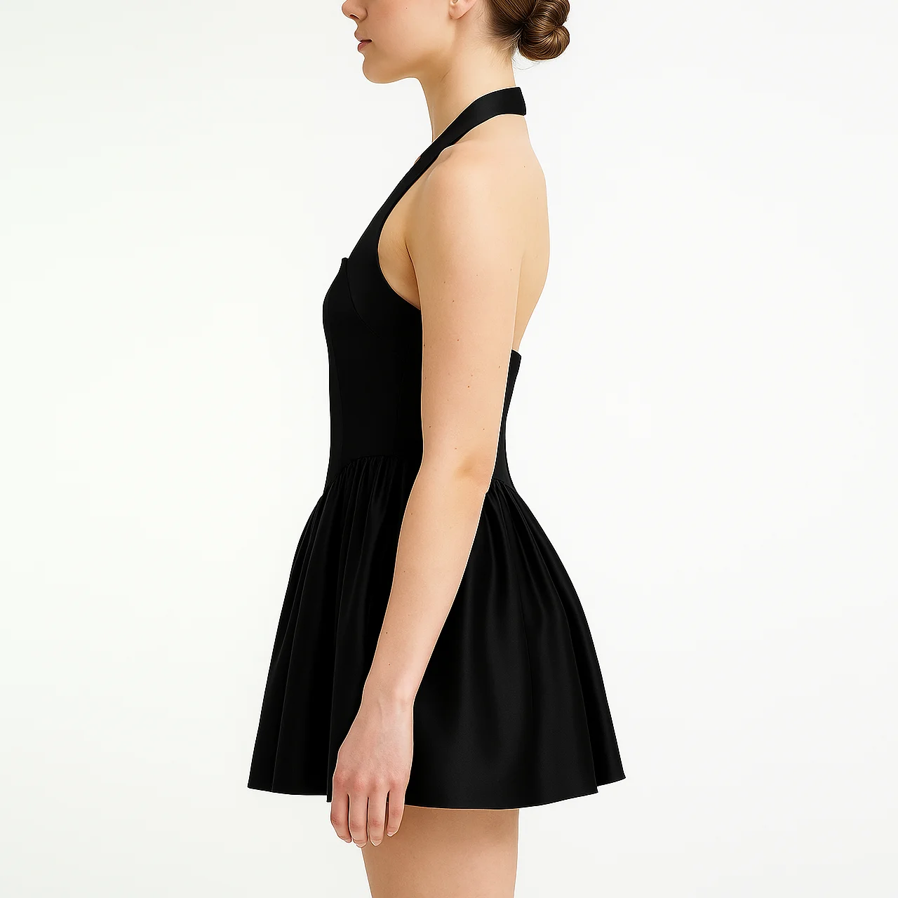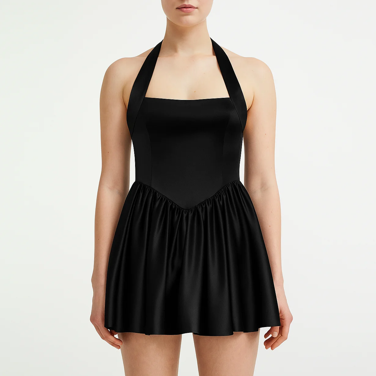 Custom Wholesale High Quality Halter Backeless A-line Women Pleated Satin Mini Micro Dress