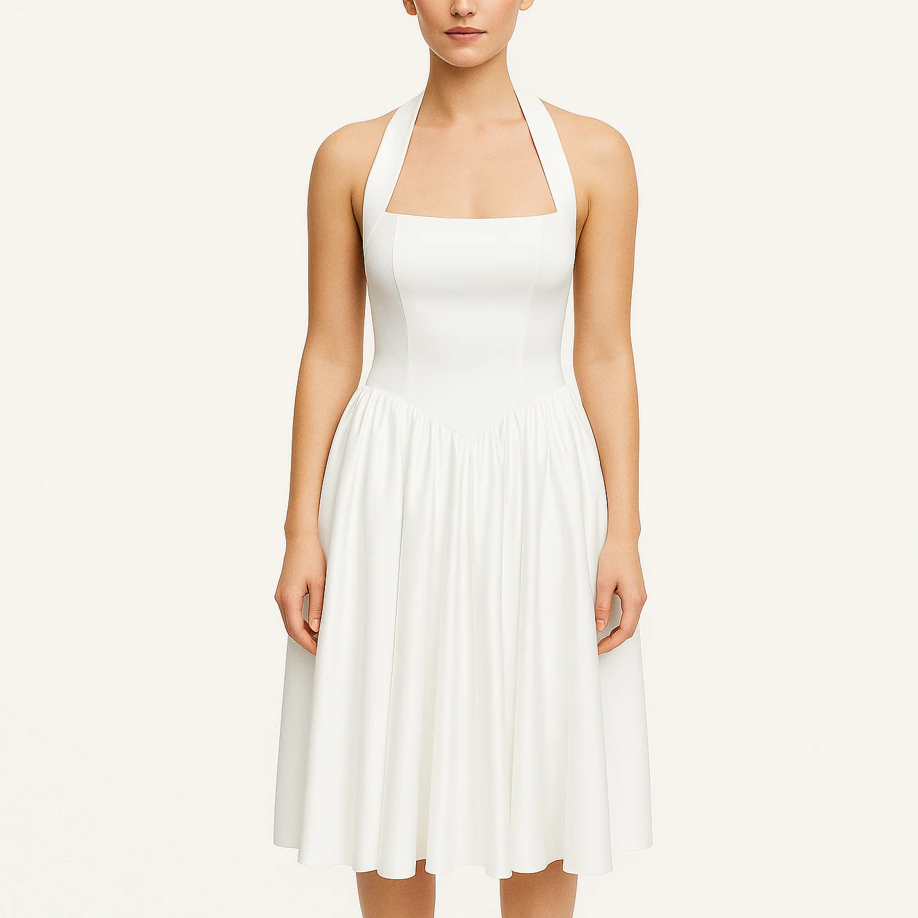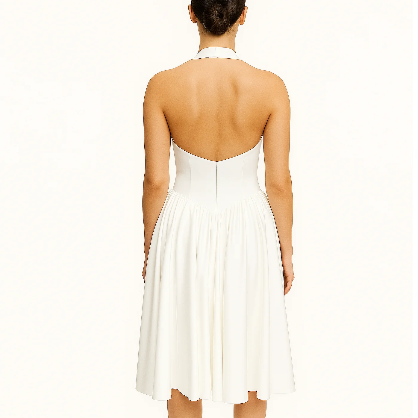 Custom High Quality Fashion White Halter Backless Midi Long Pleated Party Women Dress