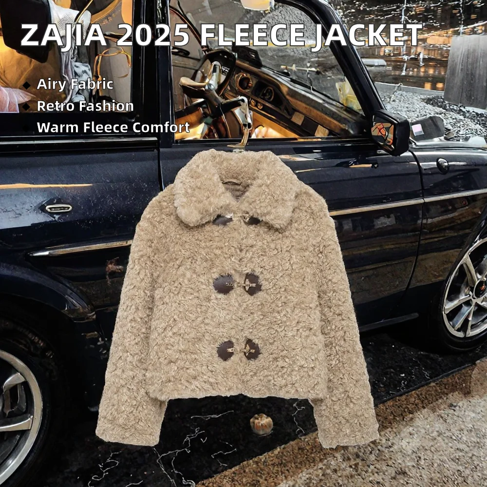 ZAJIA 2026 Women's Fleece Jacket European and American Style All-Match with Breathable Knotted Lapel Long Sleeves for Winter
