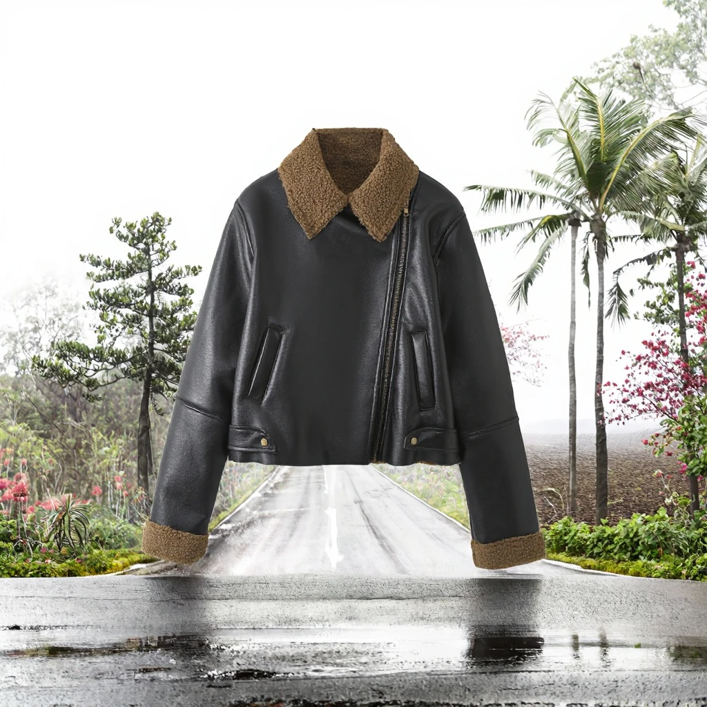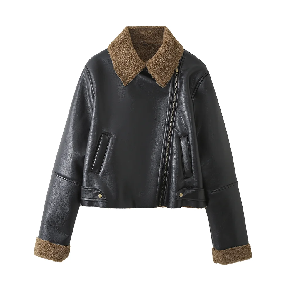 Women's Vintage Long Sleeve Motorcycle Jacket Waterproof Eco-Friendly Faux Leather Zipper Closure New Fashion Polyester