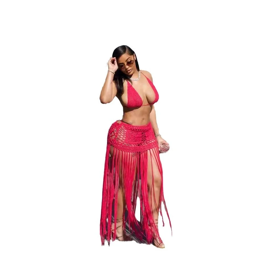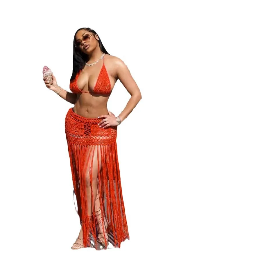 Women's Halter Neck Long Sleeveless Tassel Summer Dress Sweet Style Woven Fabric Anti-Static Solid Color Cotton Spandex Cashmere