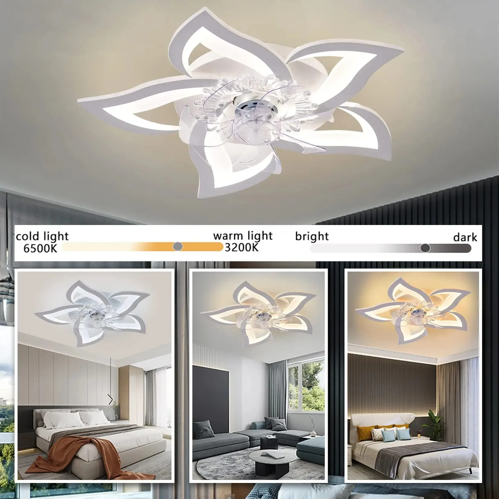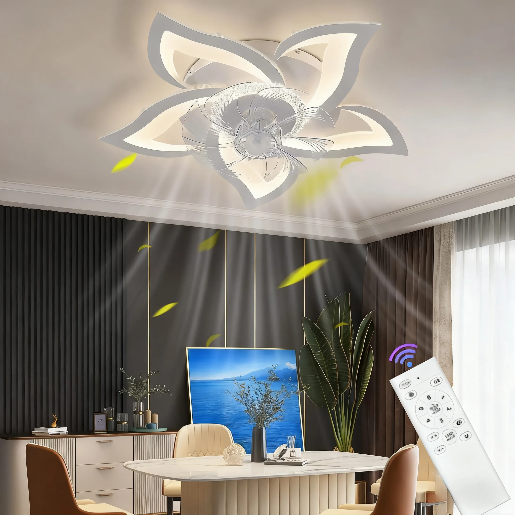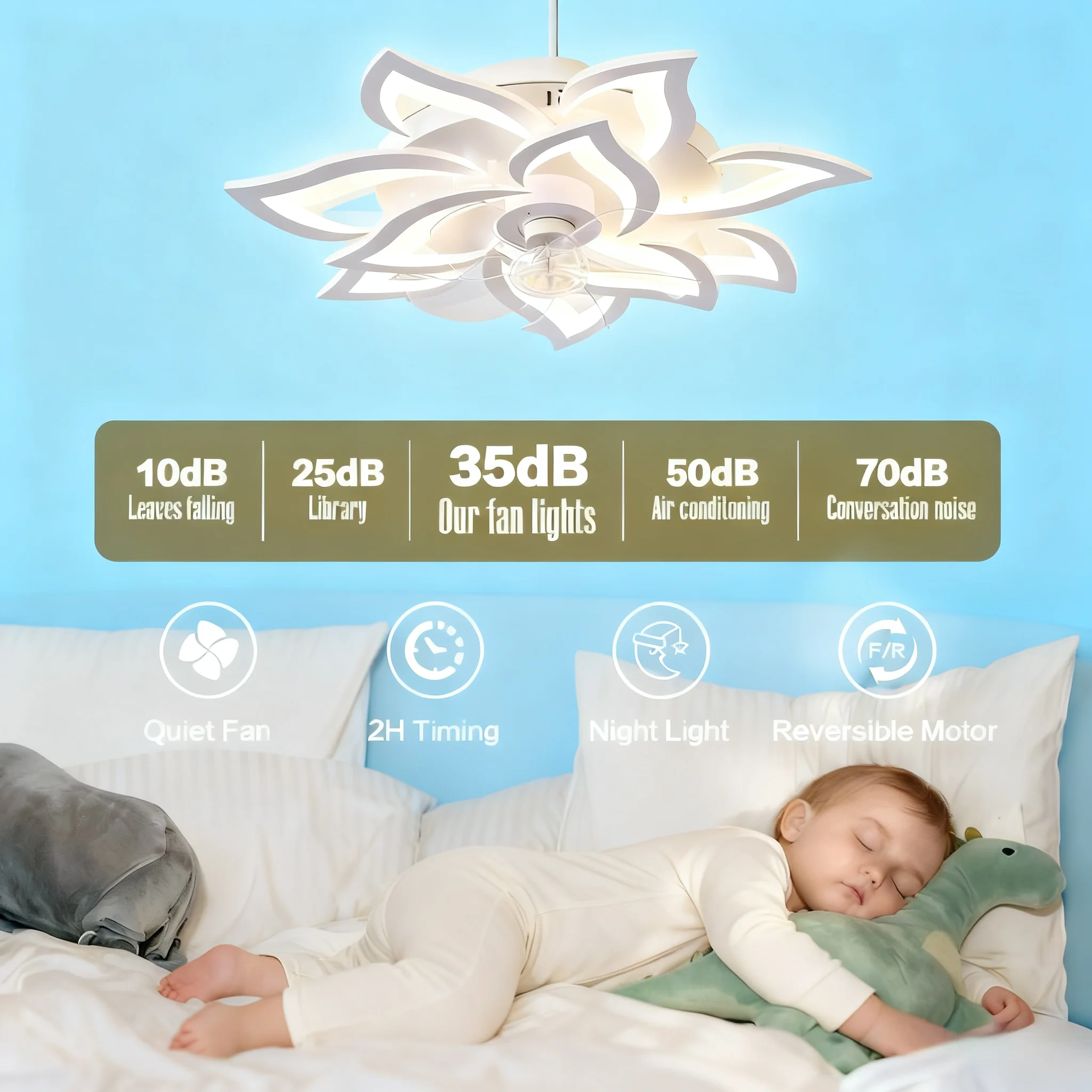 JACKSUN 32" White LED Ceiling Fan Light with Remote Control 5 Gear Wind Speed Flower Fan Lamp for Kids Room Dimmable