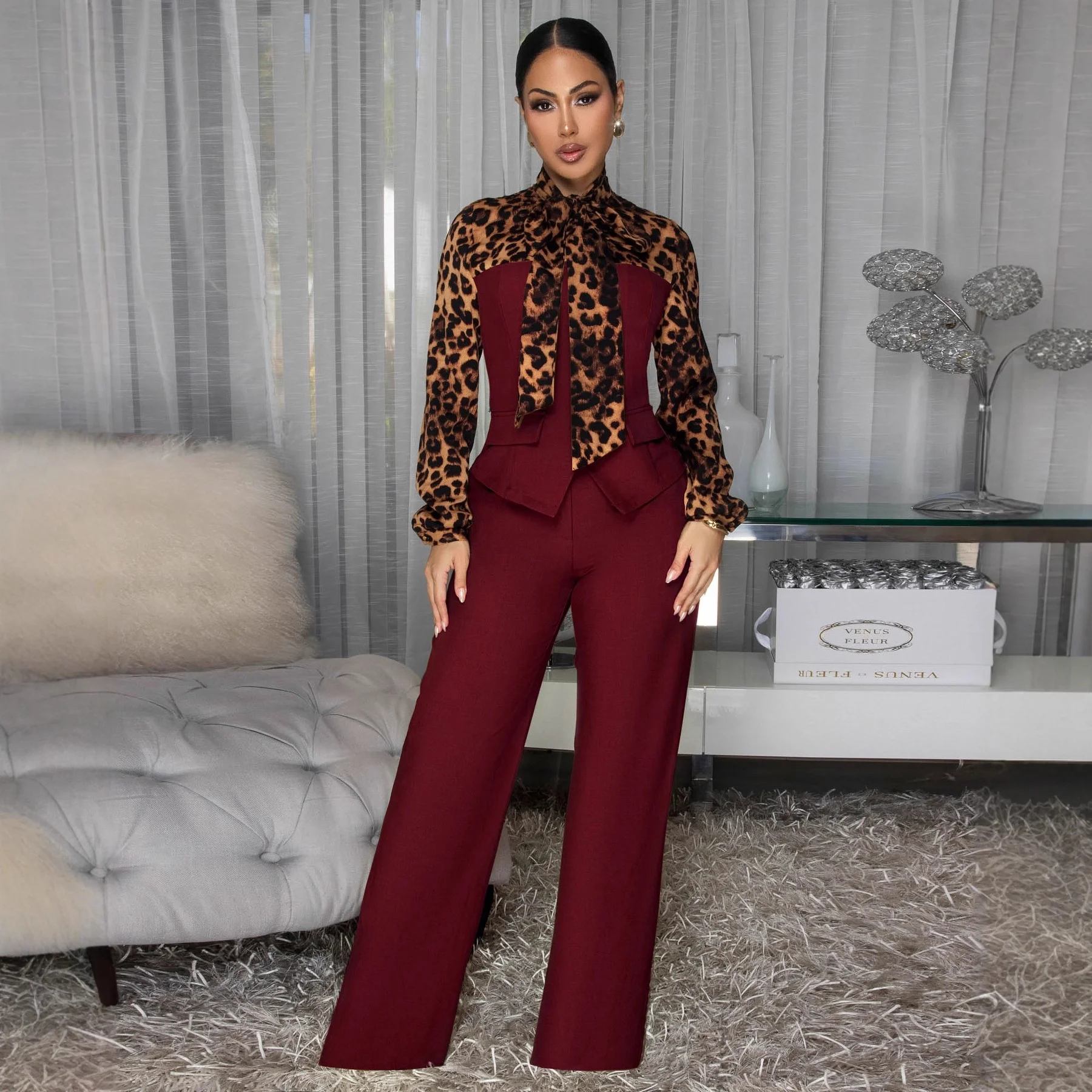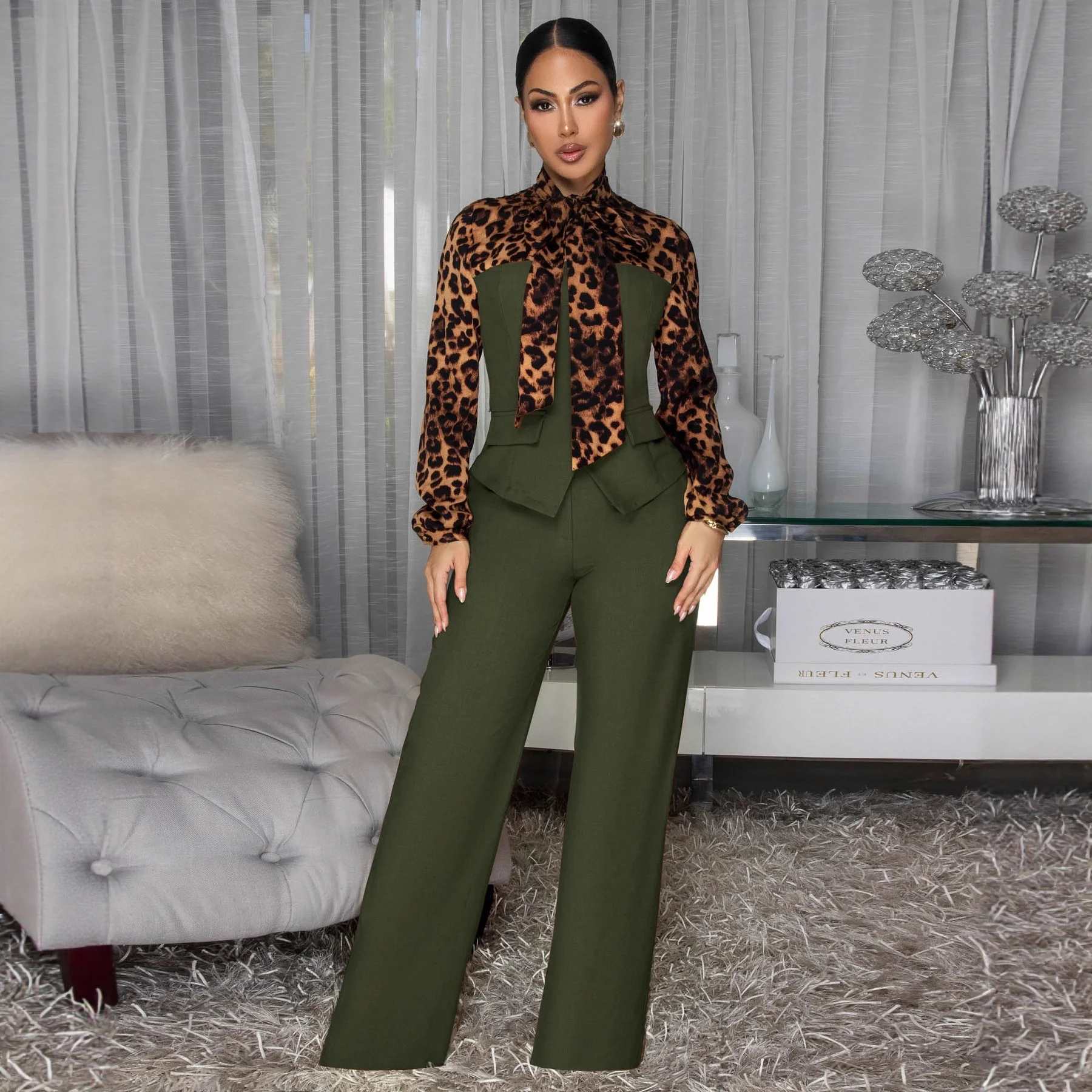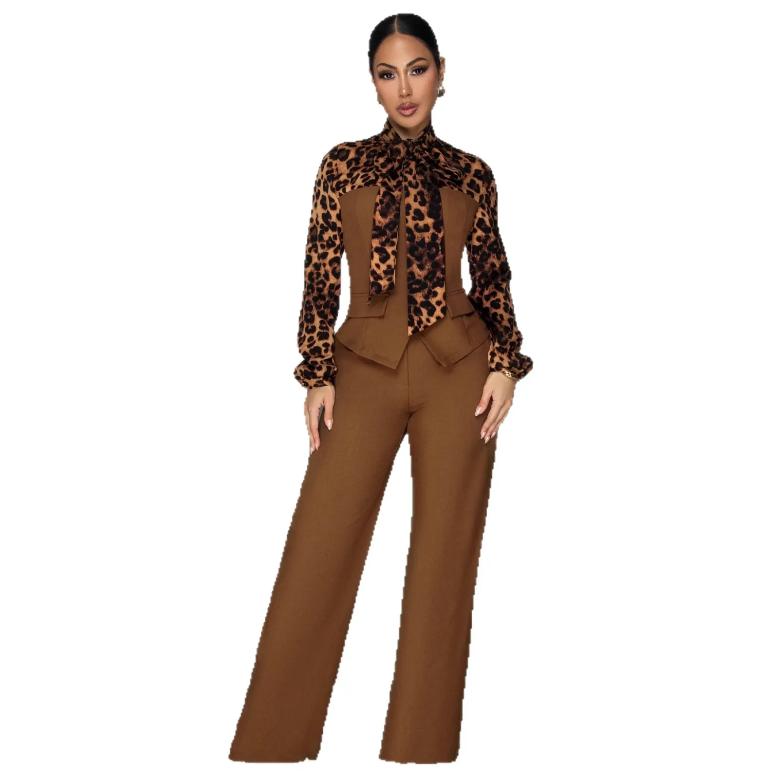 Cross-border Supply European American Women's Clothing Autumn Slim Fit Full Length Elegant Personalized Leopard Jumpsuit