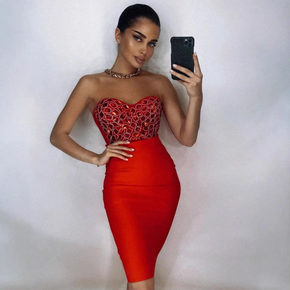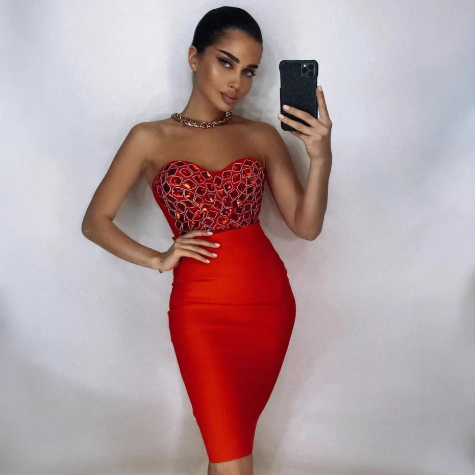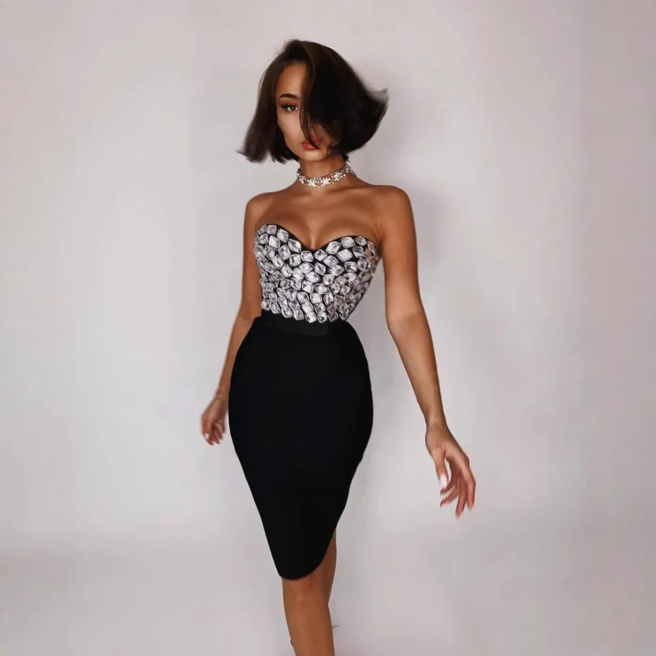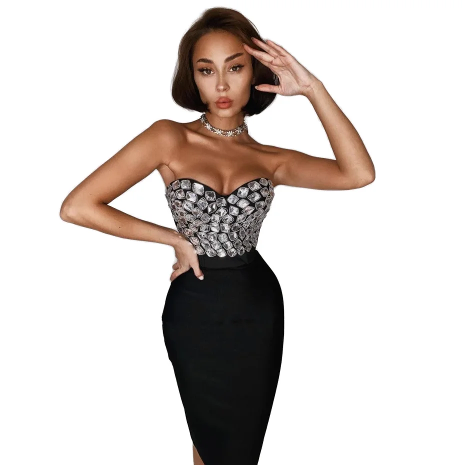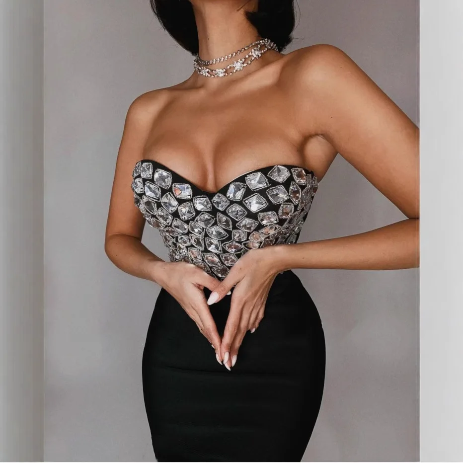 AliExpress Summer Fashion A-Line Tube Top Overskirt for Bandage Suit Hot Party Banquet Outfit Floor-Length Rhinestones