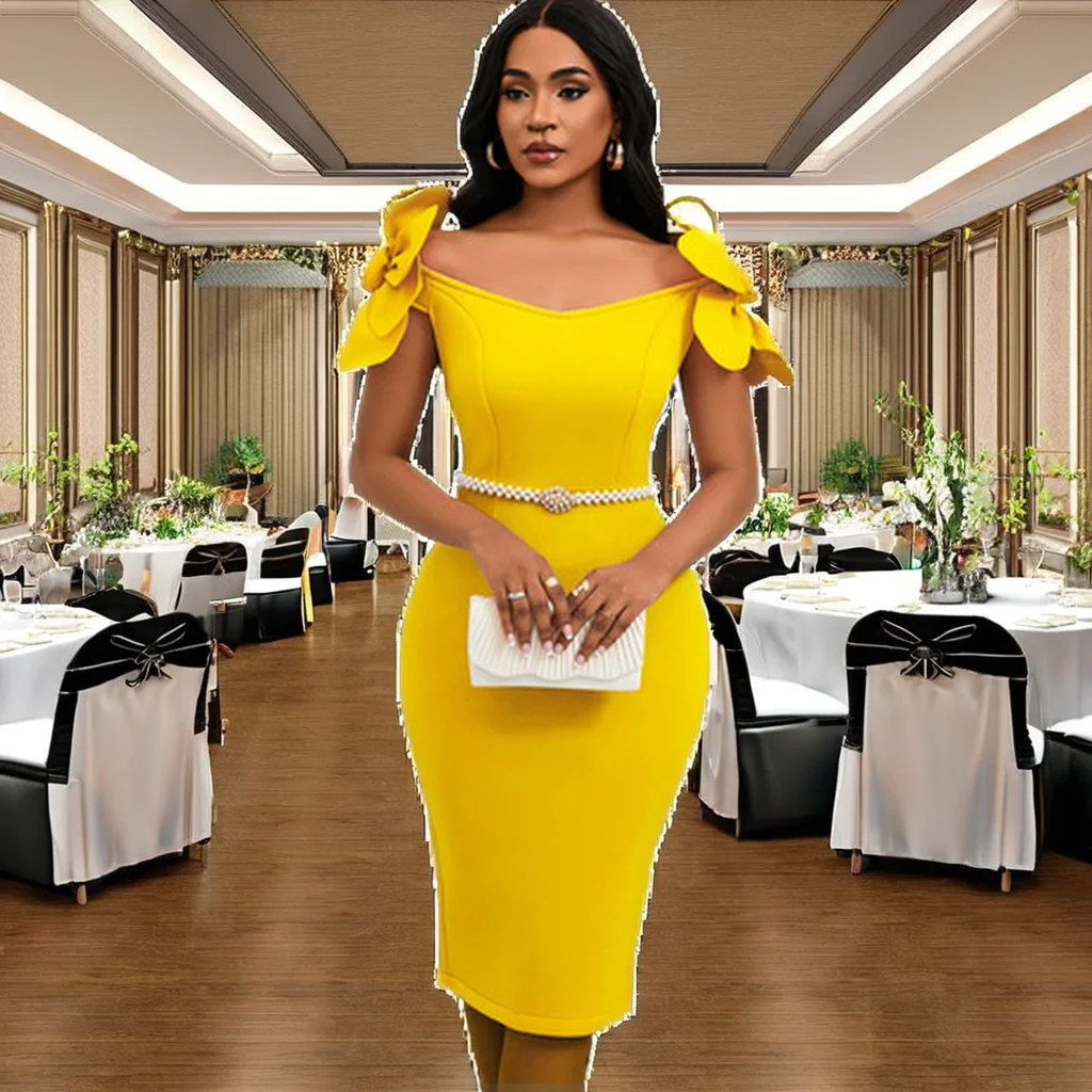 Elegant Women's 3D Flower Midi Length Evening Dresses with Belt Elegant 3D Floral Print