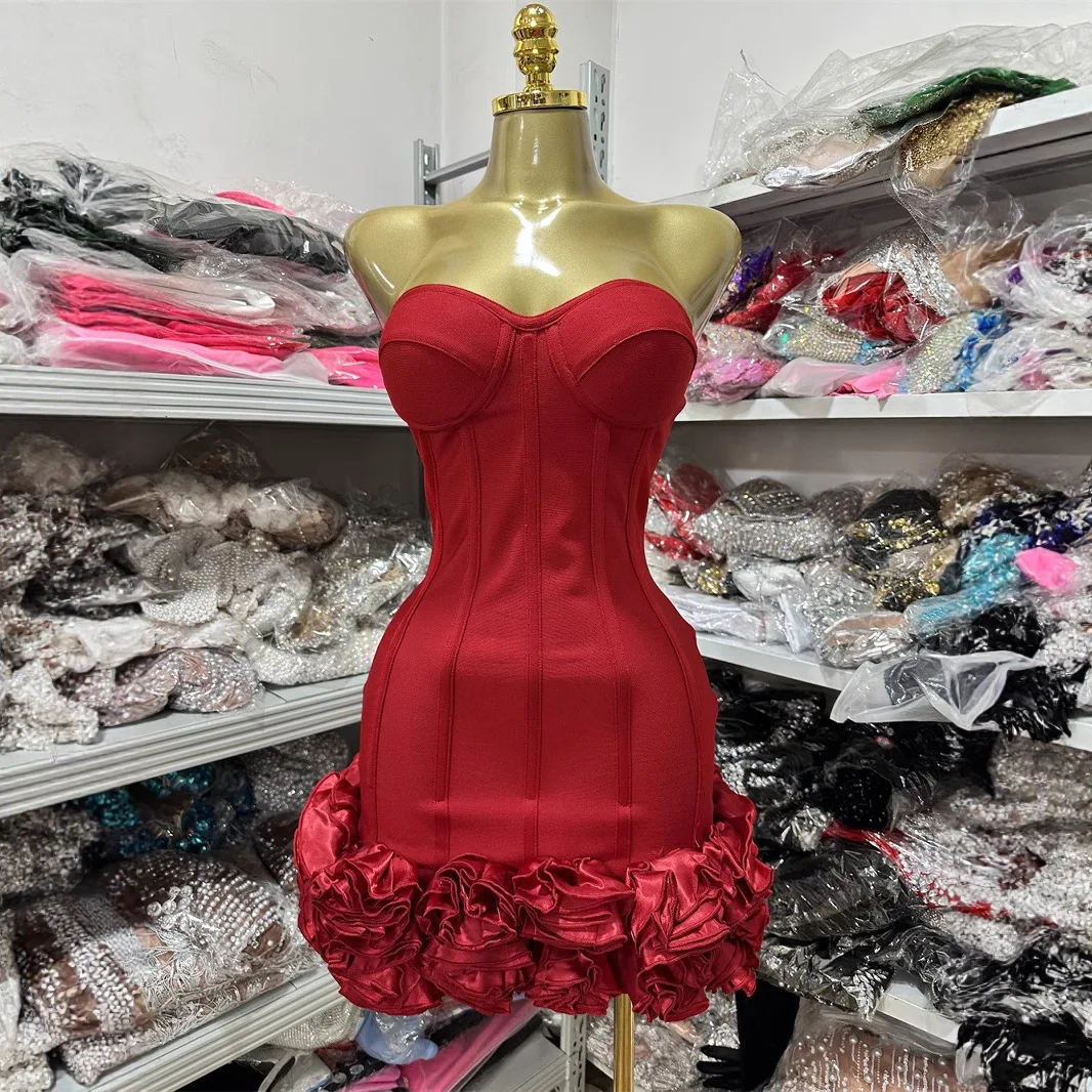 European American Women's High-End Sexy Strapless Tea-Length A-Line Summer Anti-Static Slim-Fit Party Dress