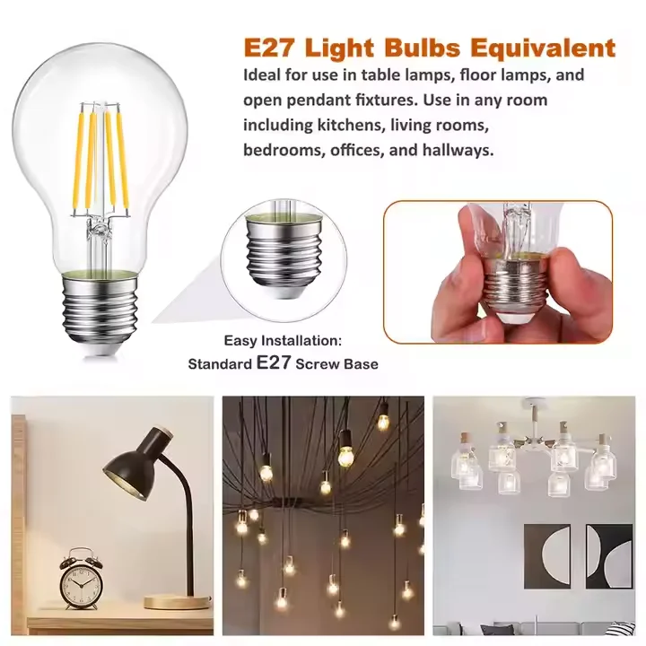 Vertak Led Manufacturers Bulb 4W 6W 8W 10W Led Bulb A60 E27 3000K 4000K 6500K Filament Bulbs