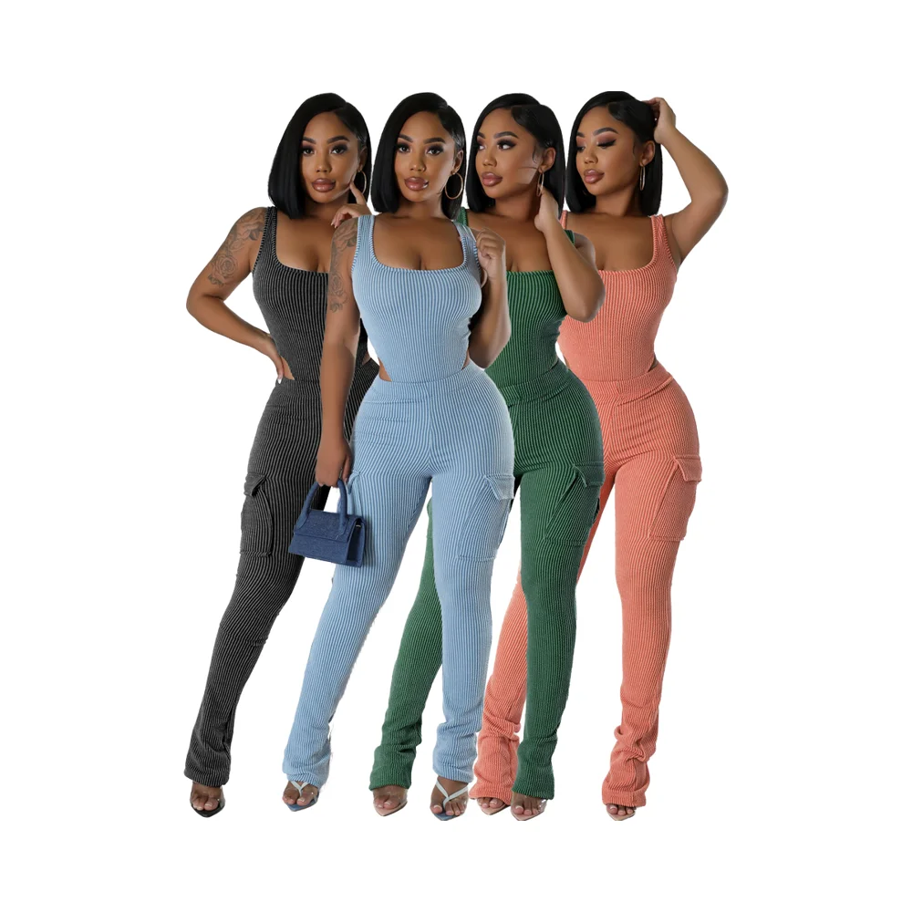 HR24055 Women's European American Style High Waist Stretch Twisted Strip Jumpsuit Autumn Winter Casual Work Trousers Suit