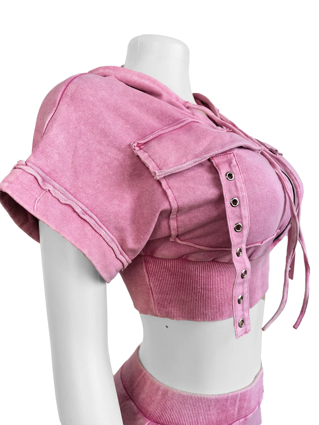 HR24037 European American Style Women's Casual Satin Hoodie Washed Old Machine Eye Navel Bat Sleeve Summer Nautical Suit Natural