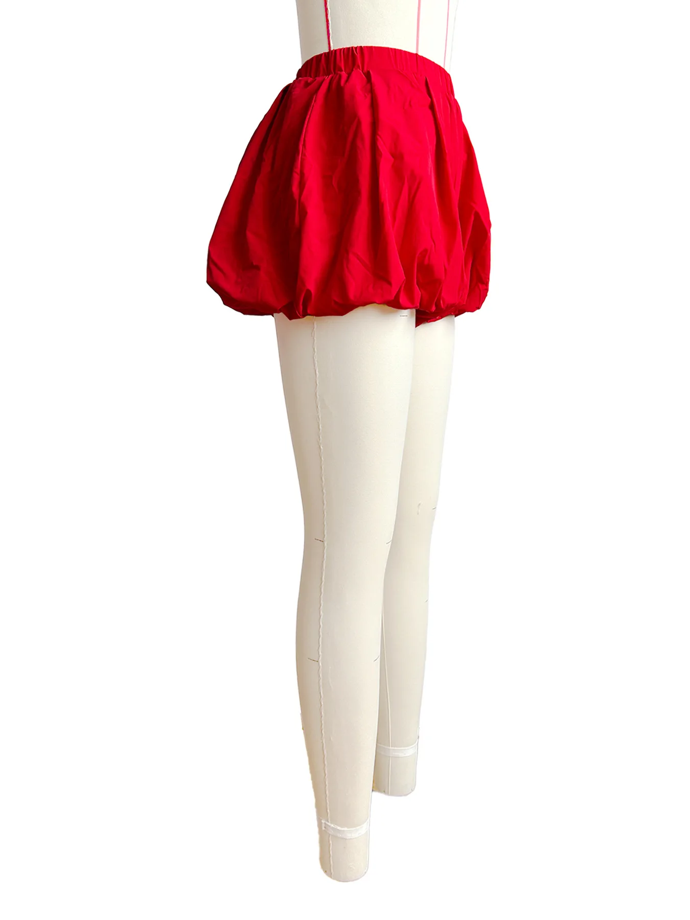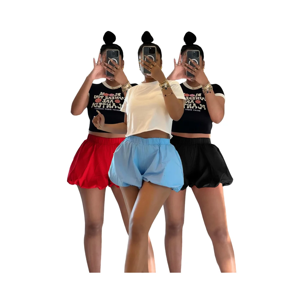 European American Women's HR24053 Double-Layer Bubble Fluffy Strap Shorts Mid Waist Elastic Waist Casual Style Polyester/Cotton