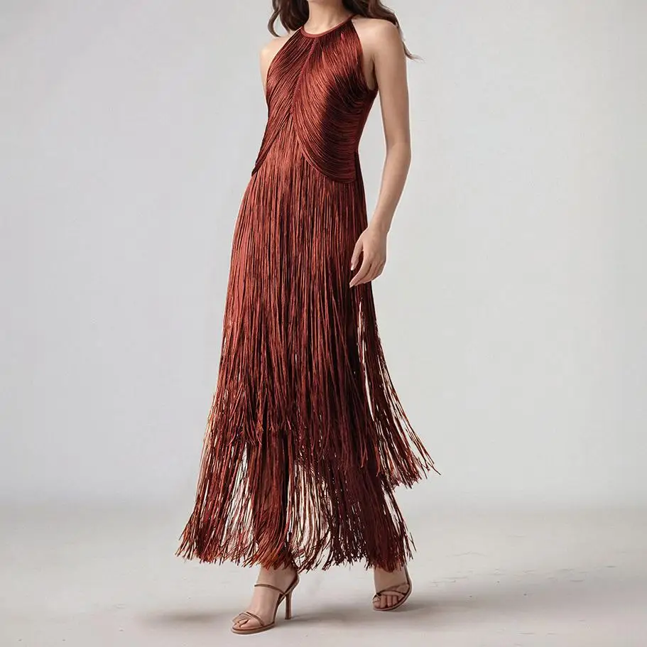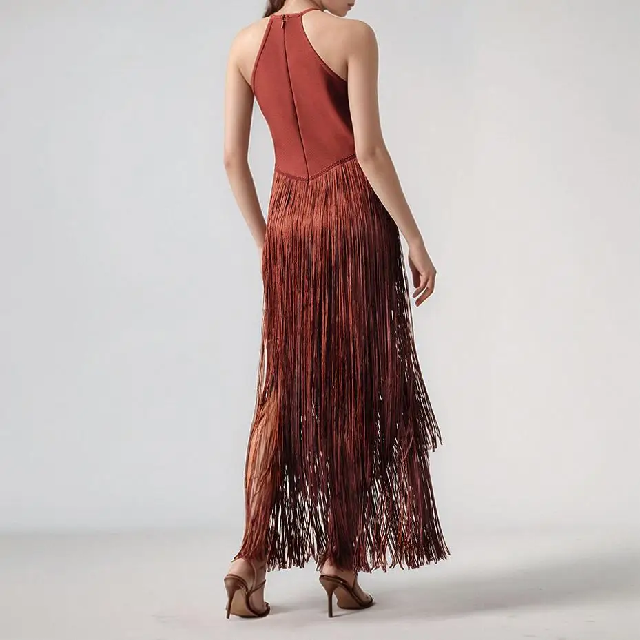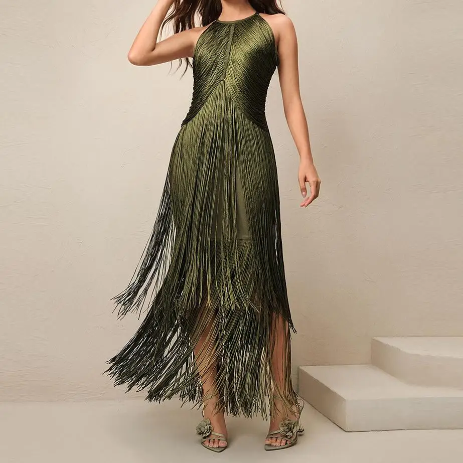 Summer Sexy Sleeveless Fringe Tassels Dress Bandage Dress Bodycon Slimming Party Dresses Stage Performances Women's Wear