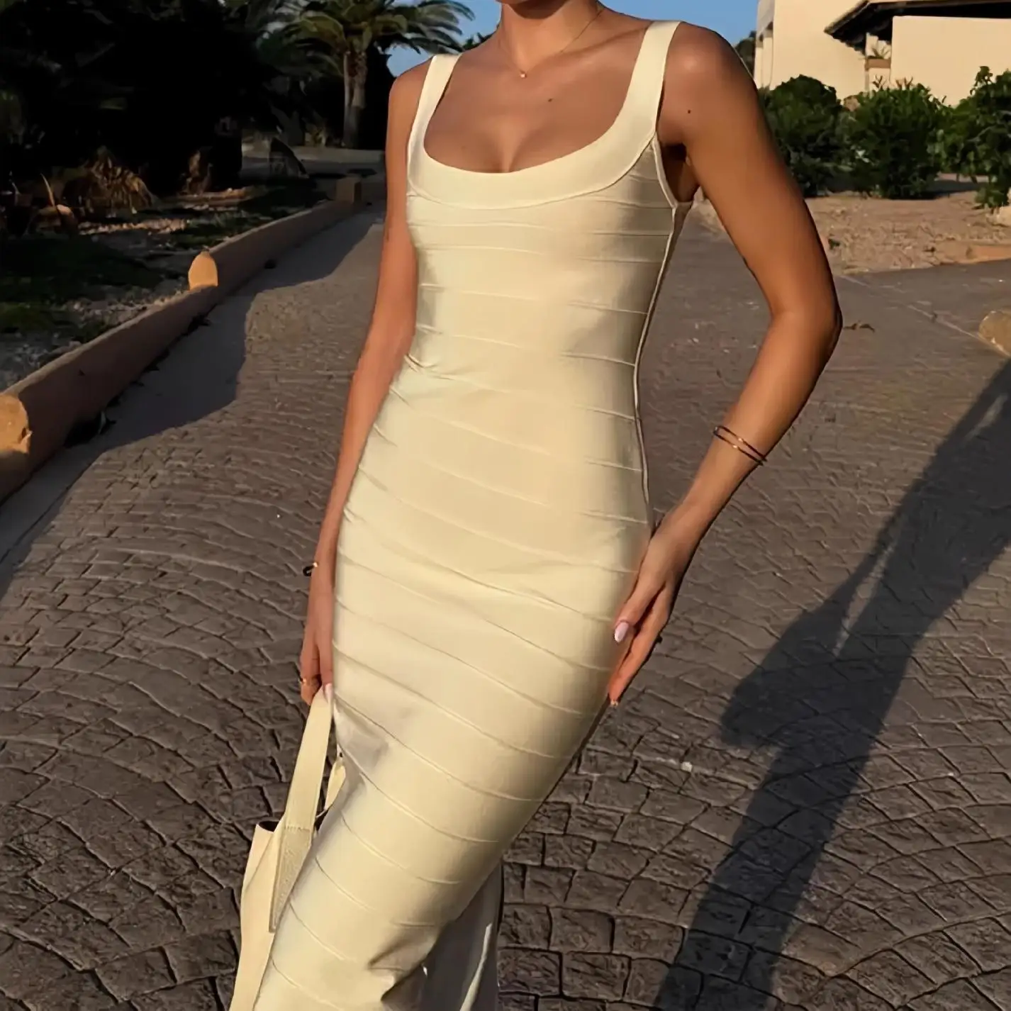 Women's Bandage Bodycon Stretchy Midi Dress Sleeveless Square Neck Slim-Fit Party Dress for Evening Cocktail Club