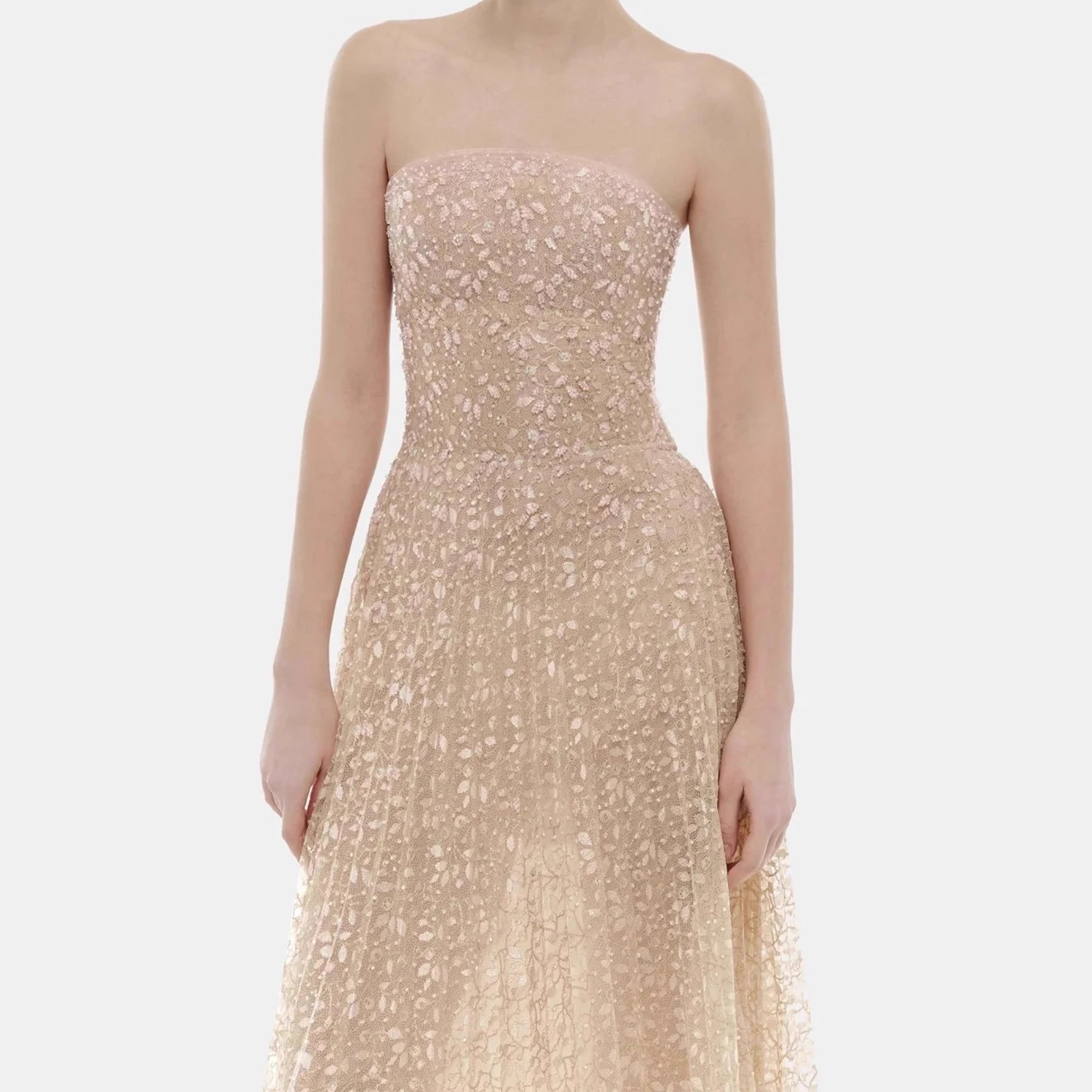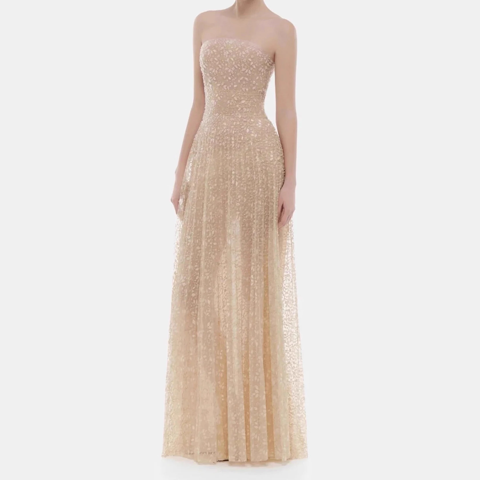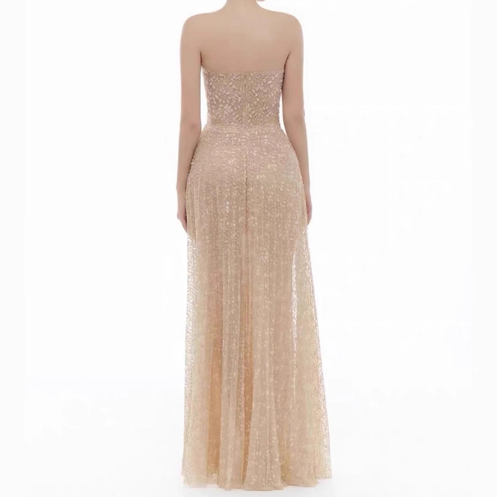 Wholesale Elegant Strapless Embellished Tulle with Textured Detail Formal Gown for Evening Event Casual Date Maxi Dress