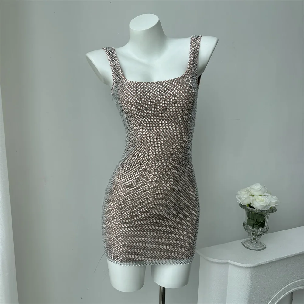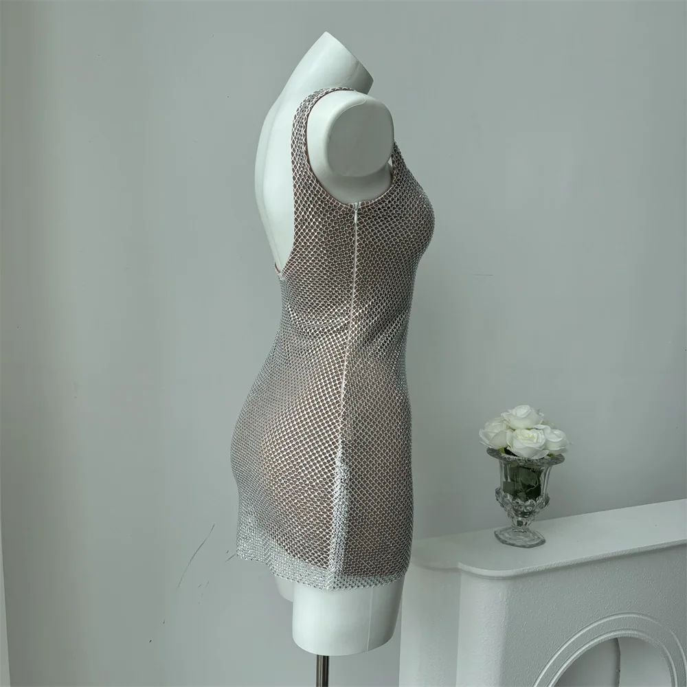Sexy Backless Bodycon Dress Custom Rhinestone Formal Wear Shiny Sleeveless Club Party Gown Vestidos Elegant Evening Mini Dress