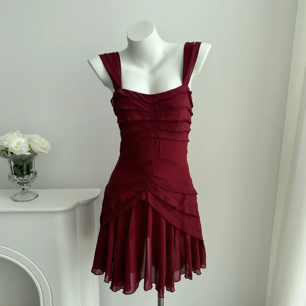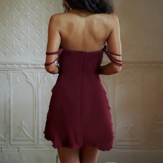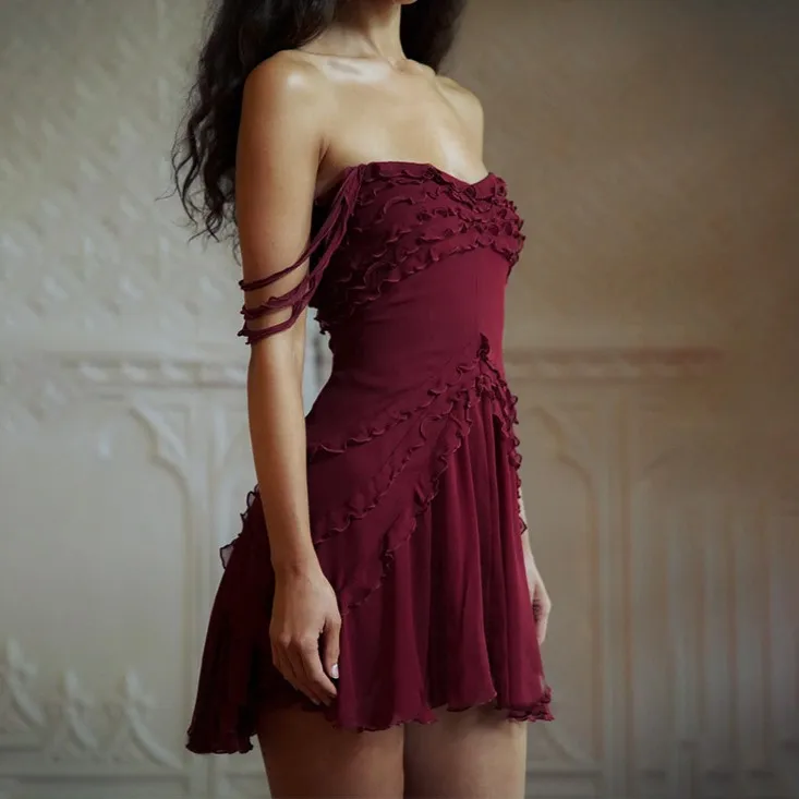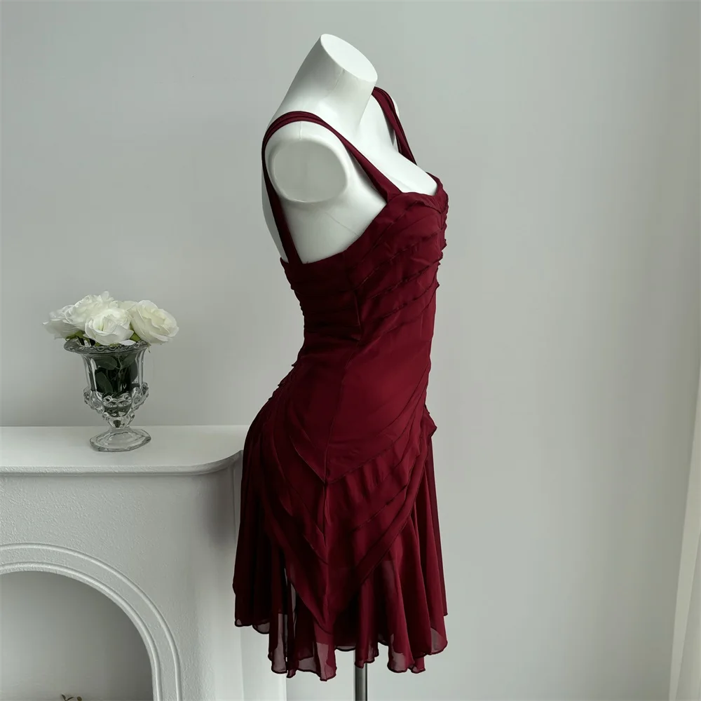 Hot Sale High Quality Women Girls Ruffle Solid Sleeveless Graceful Multi Layer Straps Mini Dress for Casual Party Vacation