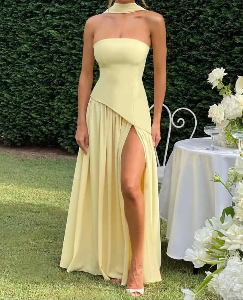 High Quality Wholesale Elegant Solid Maxi Dress High Slit Backless Strapless Long Sexy High Quality Party Formal Casual Gown