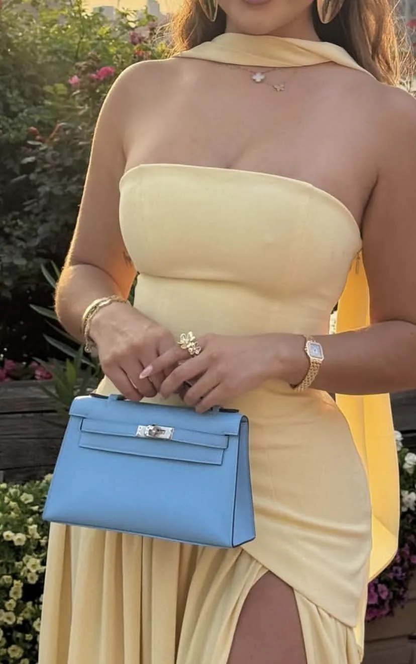 ZYHT 73571 Custom Elegant V-Neck Cape Sleeve Dresses Trendy Straight Yellow Maxi Party Gowns Modest Evening Dress for Women