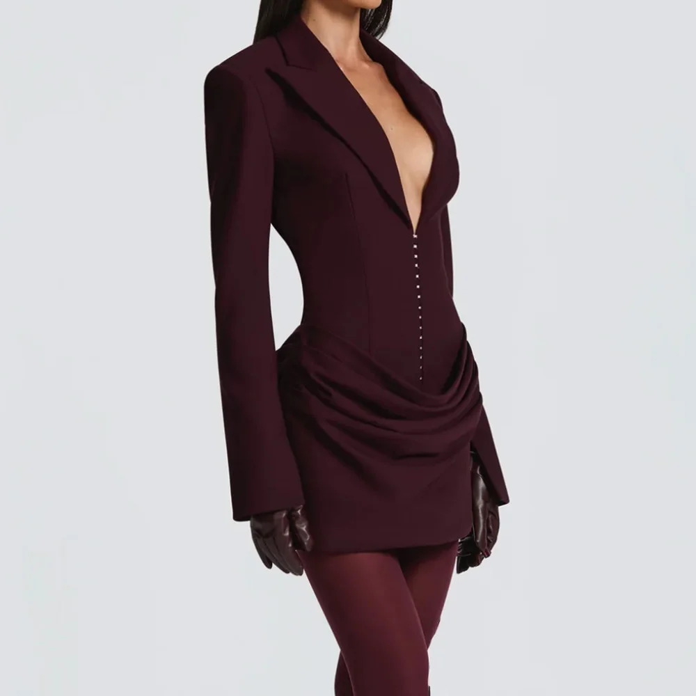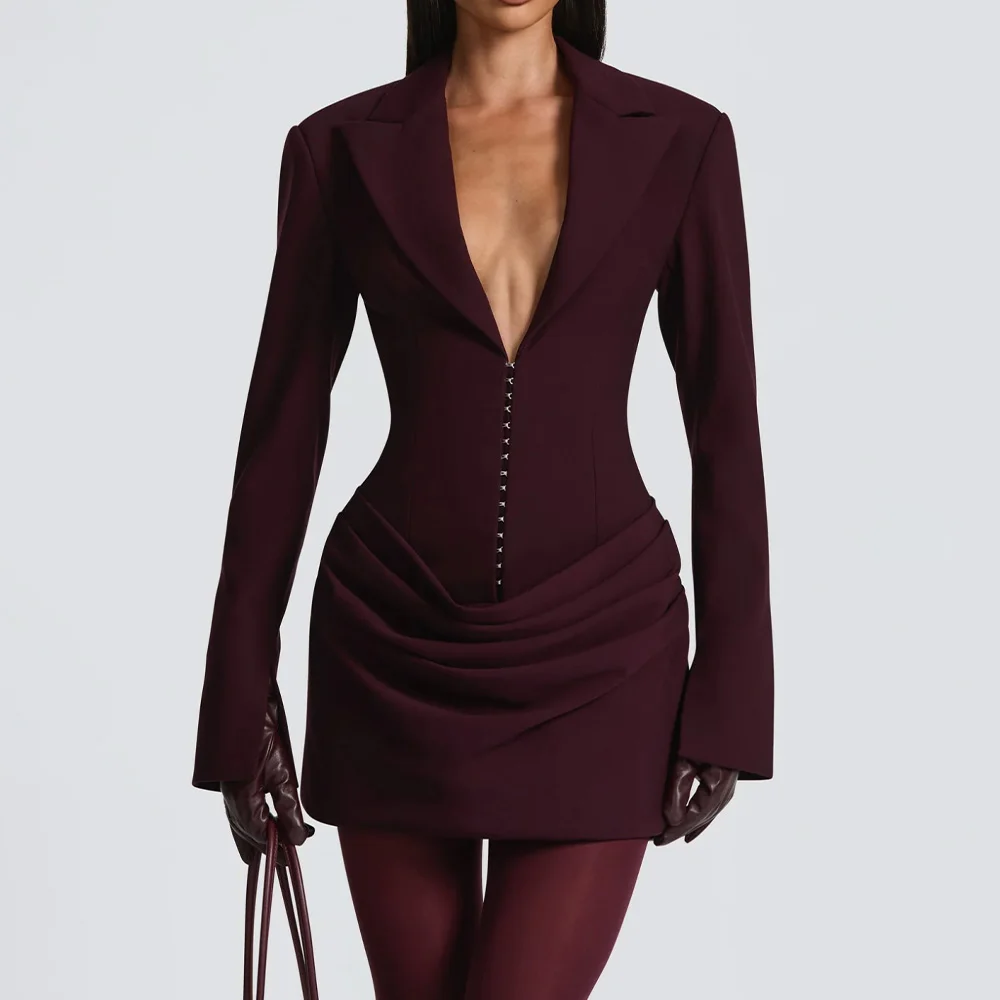 Wholesale OEM Autumn Winter New Casual Office Temperament Hot Dresses Sexy Deep V Short Dress Long Sleeves Slim-Fit Hip Dress